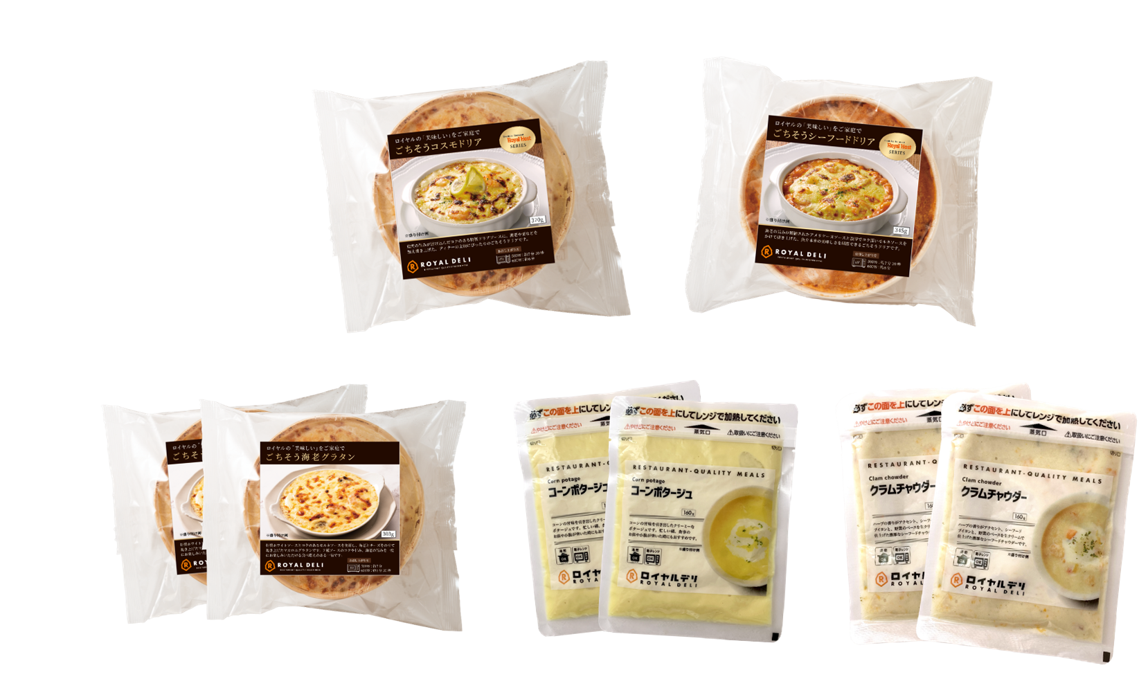 自宅でのひとときやおもてなし、大切な人への贈り物に、レストランの美味しさを急速冷凍技術で閉じ込めた家庭用フローズンミール「ロイヤルデリ」で、「日常の中で手軽で豊かな食事時間」をお過ごしください。