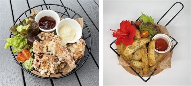 オリジナルパンケーキはこだわりの生地に石垣島産のフルーツをたっぷりと使用した全5種類のメニューをご用意しております。生地は独自配合により「ふわふわ」「しゅわしゅわ」の食感を実現。フルーツは全て石垣島産のものを使用し、贅沢にトッピング。こだわりの生地と石垣島産フルーツは相性が良く当店の看板メニューとしてお客様に大変ご好評いただいております。