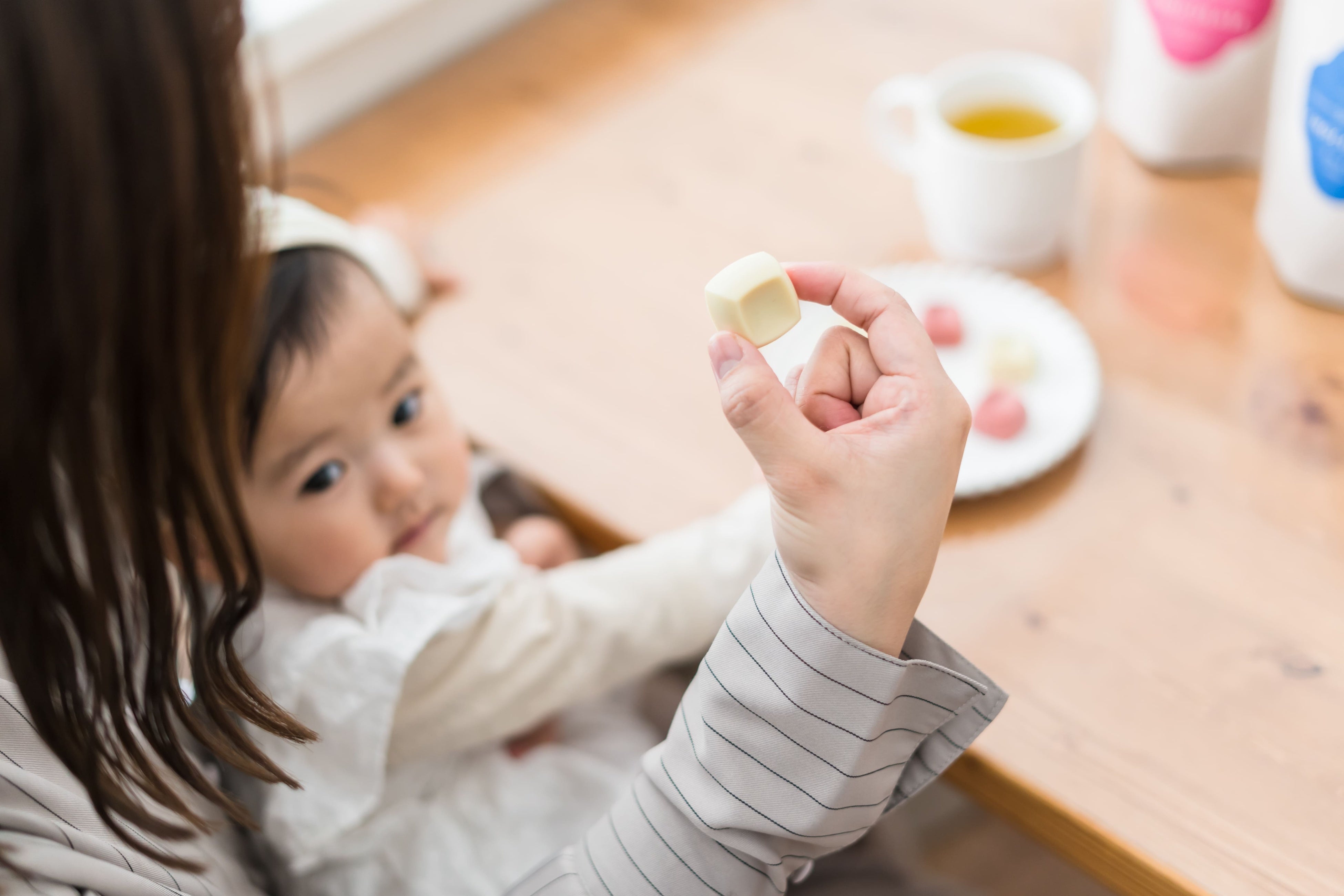カカオバター、甜菜糖、全粉乳、ピロリン酸鉄、ビタミンB12、葉酸