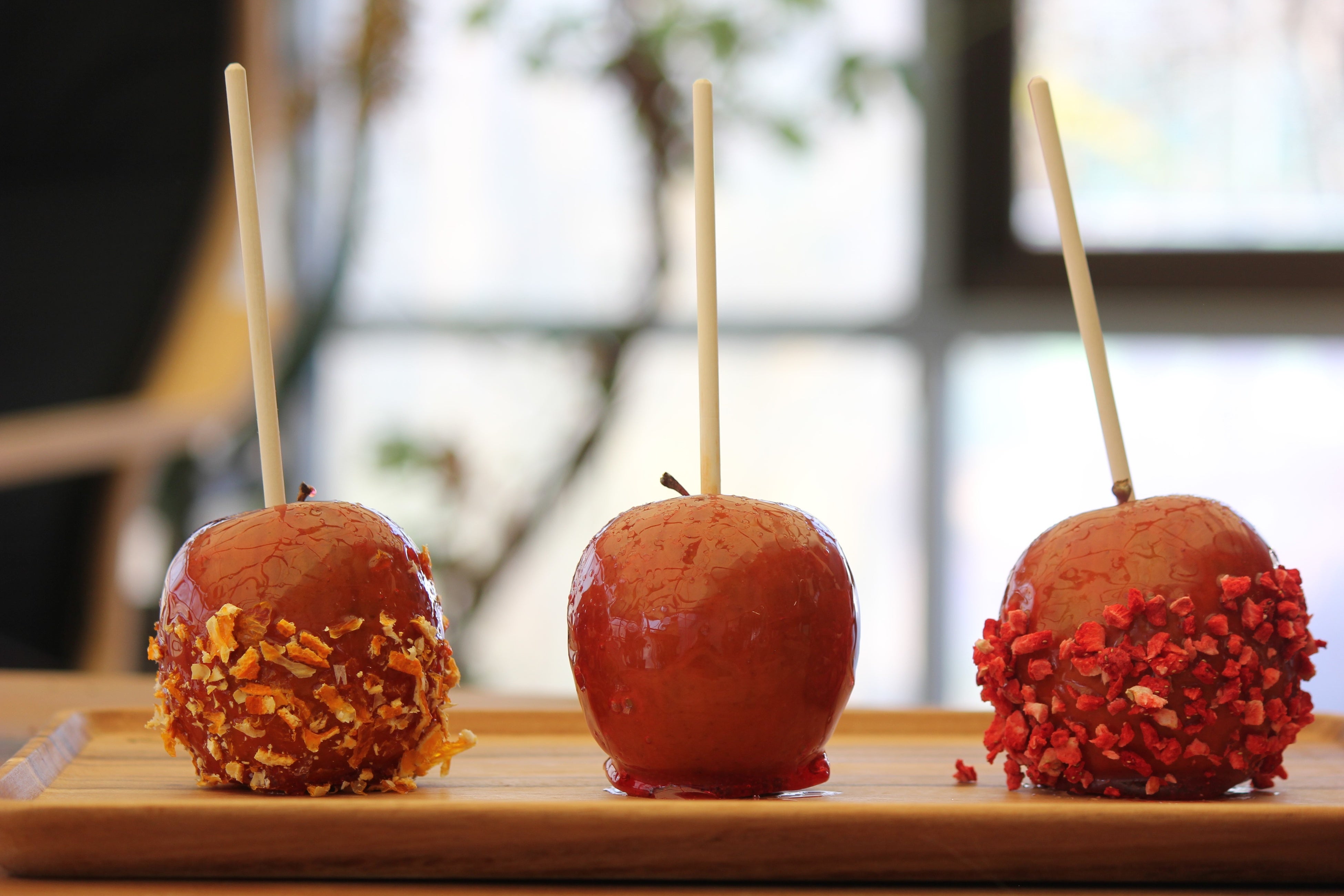 懐かしいりんご飴にフレーバーをまぶして、おしゃれでかわいい見た目に。