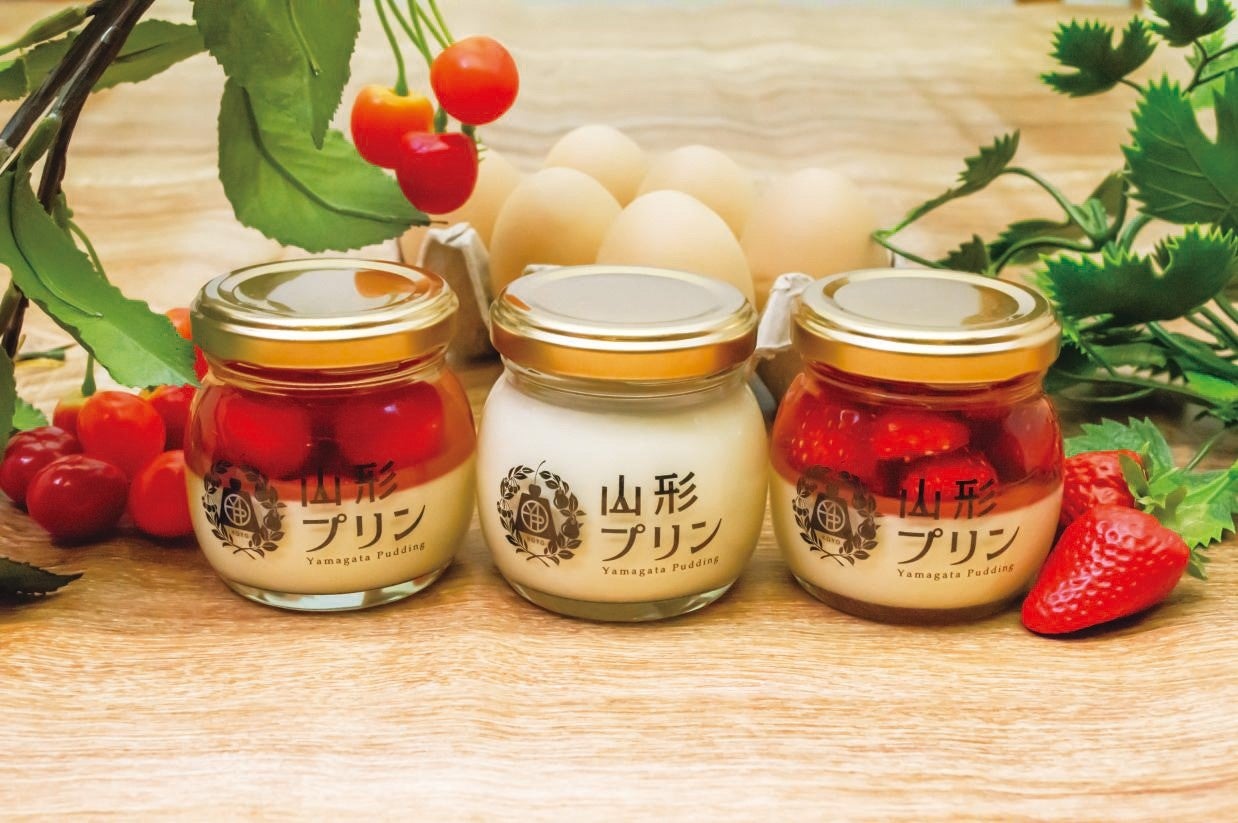山形県産のやまべ牛乳、紅花卵を使用したなめらかなプリンに、山形県産のフルーツを乗せた彩豊かな手作りプリンです。