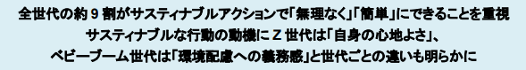 背景には、ベビーブーム世代「環境配慮への義務感」、Z世代「自身の心地よさ」と違いも明らかに