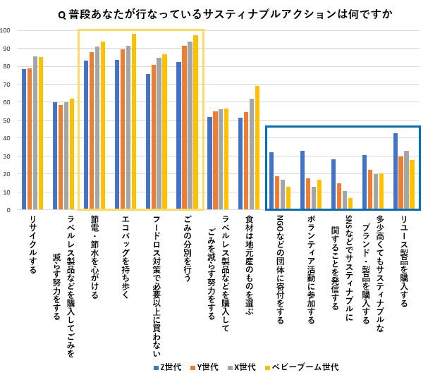 Z世代は「他者巻き込み型」、ベビーブーム世代は「自己完結型」のアクションを多数実行