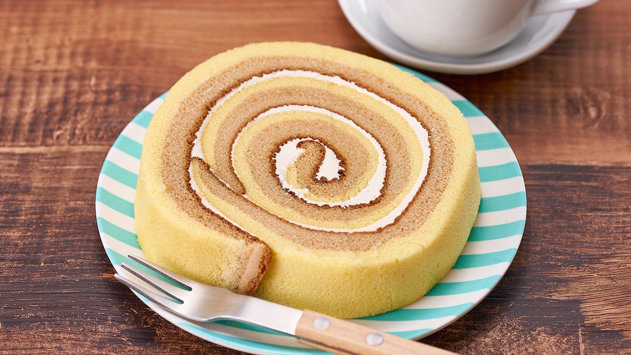 キャラメルとプレーン、2色のロールケーキにキャラメルクリームを巻き込みました。キャラメルの香りと甘みが口いっぱいに広がるロールケーキです。