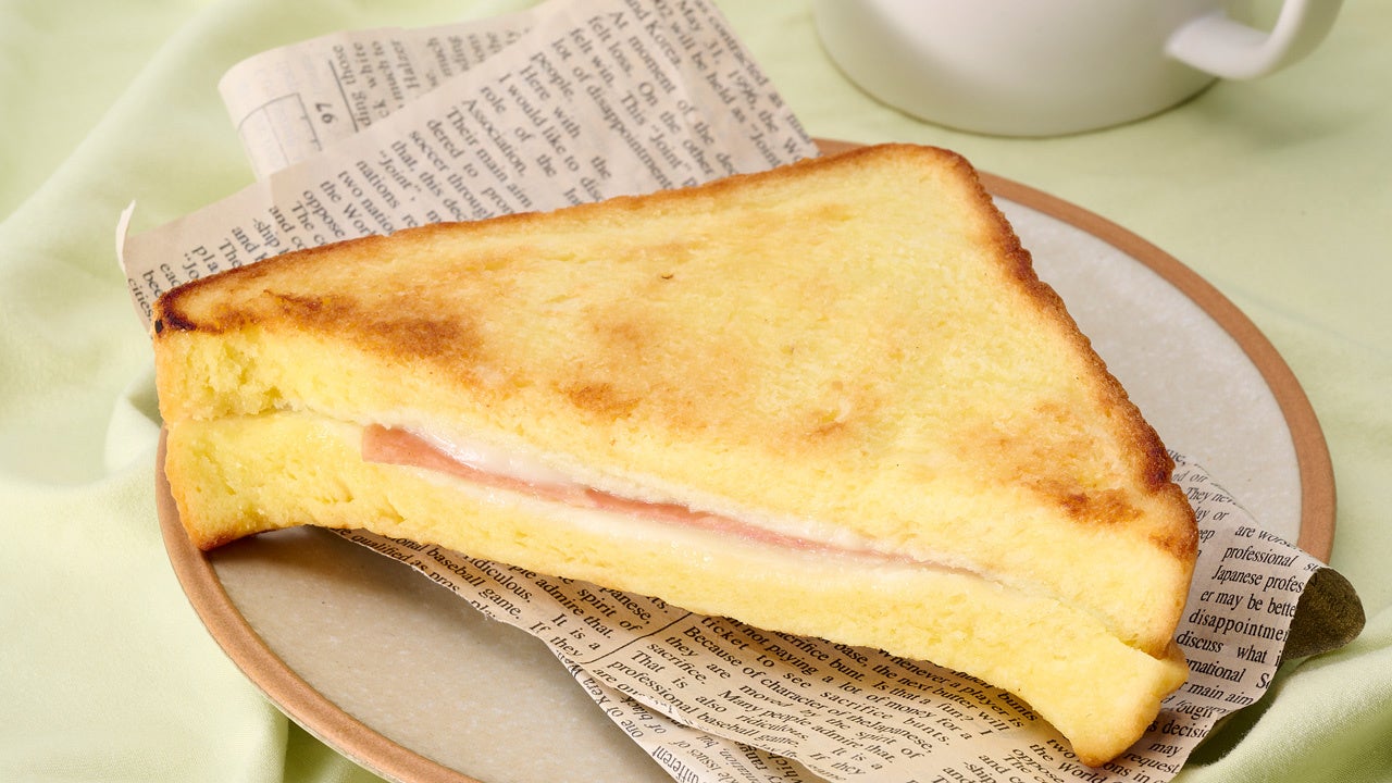 食パンに4種のチーズ(モッツァレラ、パルメザン、エメンタール、ブルーチーズ)、ハム、マヨネーズを挟んだフレンチトーストです。甘じょっぱい絶妙な味わいが癖になります。温めて食べると一層おいしく召し上がれます。