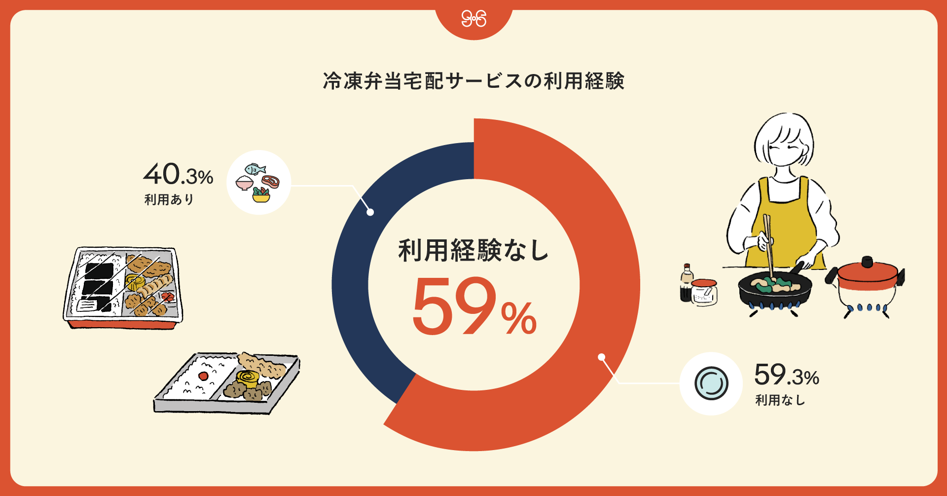 GREEN SPOON利用者の過半数に当たる59%が、他の冷凍弁当宅配サービスを利用した経験がないと回答しました。