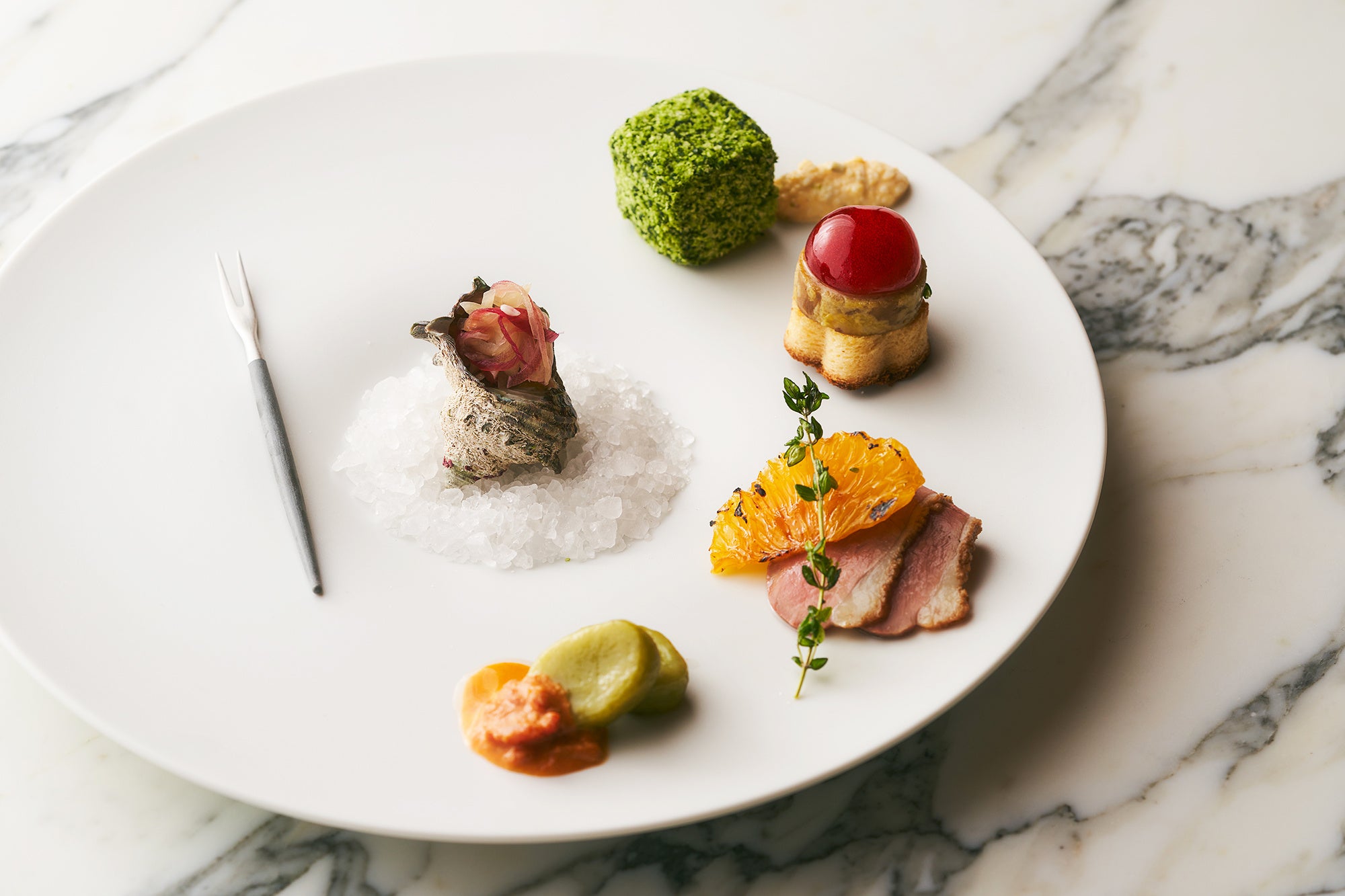 まずは、シェフの遊び心とこだわりを散りばめた、ひとくちサイズのアミューズでおもてなし。