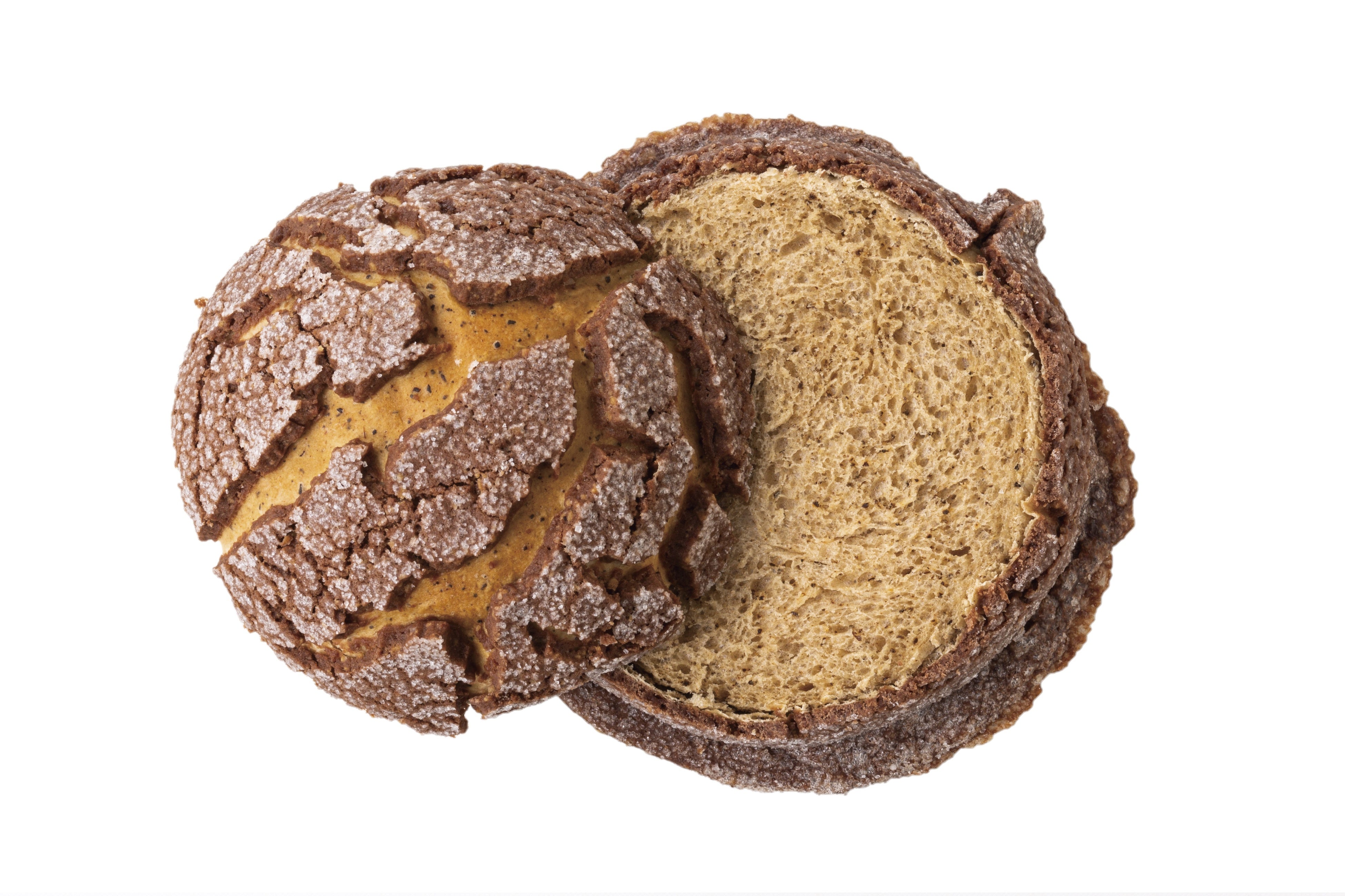 5月15日(月)から発売をする『こめろんぱん』も米粉を使用したメロンパン。米粉を使うことにより、外はホロっとさっくり、中はしっとりもちもち。「カスタードメロン」、「抹茶黒胡麻メロン」、「チャイラテメロン」、「レーズンパイメロン」など、色と味で選べる6種類をご用意いたしました。真っ黒のメロンパン「漆黒の抹茶クランベリーメロン」は、一口食べると抹茶味のパンと甘酸っぱいクランベリーが出てくる、驚きのメロンパン。直径が13cmと大き目サイズ。米粉パンの優しい味わいや食感をお楽しみください。