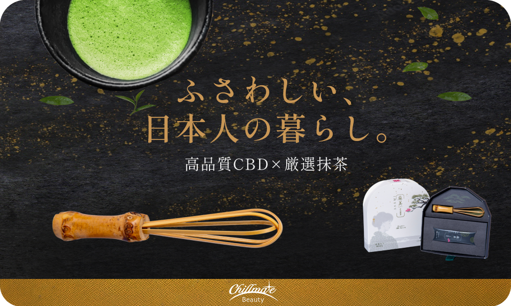 株式会社chillmateは、Beauty部門から健康と美容に貢献する日本の伝統的なお茶である抹茶に、高純度CBDを配合した新商品「麻美」を発売いたしました。さらにオリジナルミニ茶筅付きでご自宅でも簡単に茶道がお楽しみいただけます。