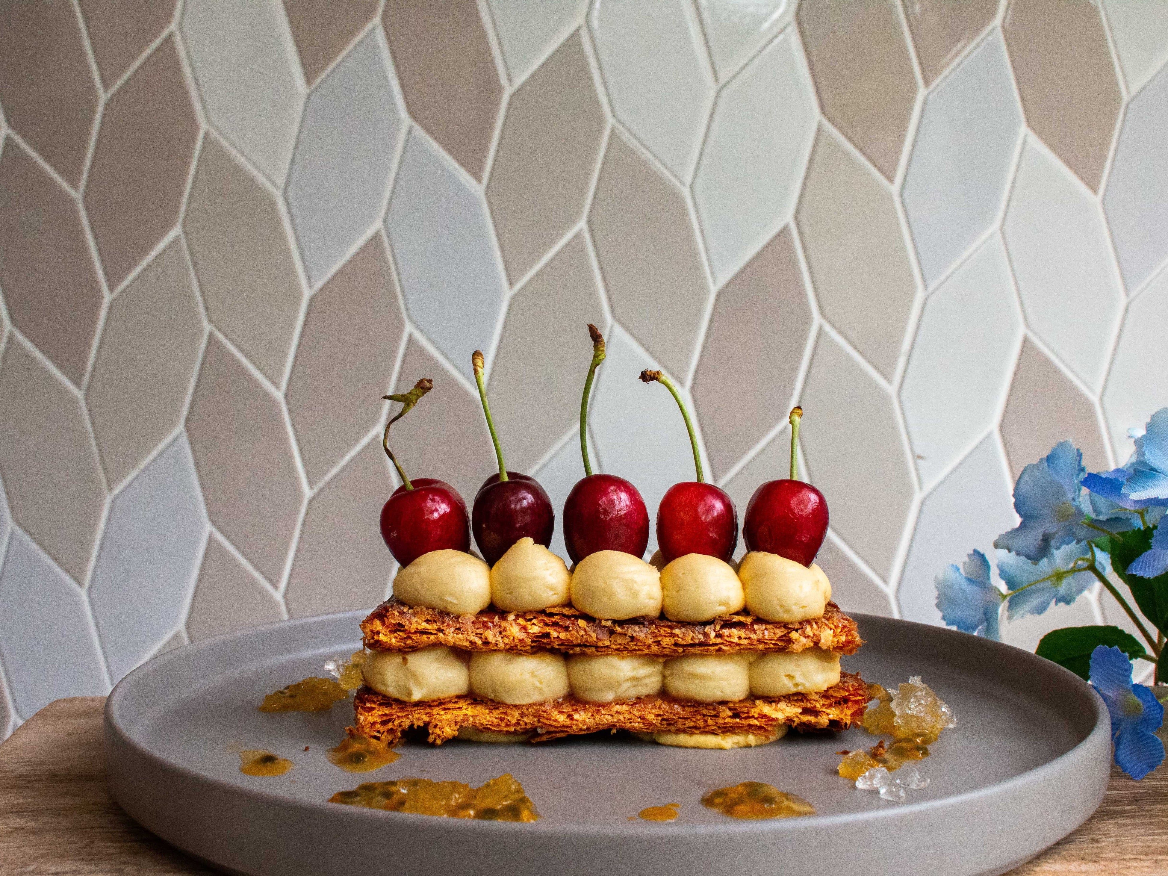 アメリカンチェリーとパッションクリームのミルフィーユ ¥1980(EAT IN)