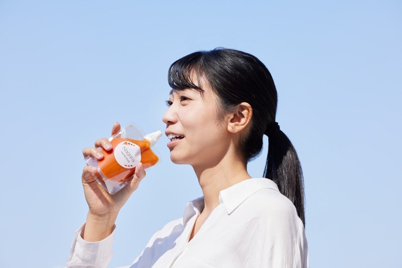 Nagaraハンディスープは、そのまま飲める飲み口付きパウチの本格的な冷製スープ。レシピは大手外資系ホテルでシェフを務めた岡嶋伸忠氏が監修。白いトウモロコシ「ピュアホワイト」や雪の中で育った「ふかうら雪人参」、特別な“アイメック農法”で作ったフルーツトマト「フォレストフルティカ」など素材からこだわった本格的な味わいを、いつでもどこでも手軽に楽しめるのが特徴です。化学調味料・保存料・着色料不使用なので小さなお子様も安心して食べていただけます。