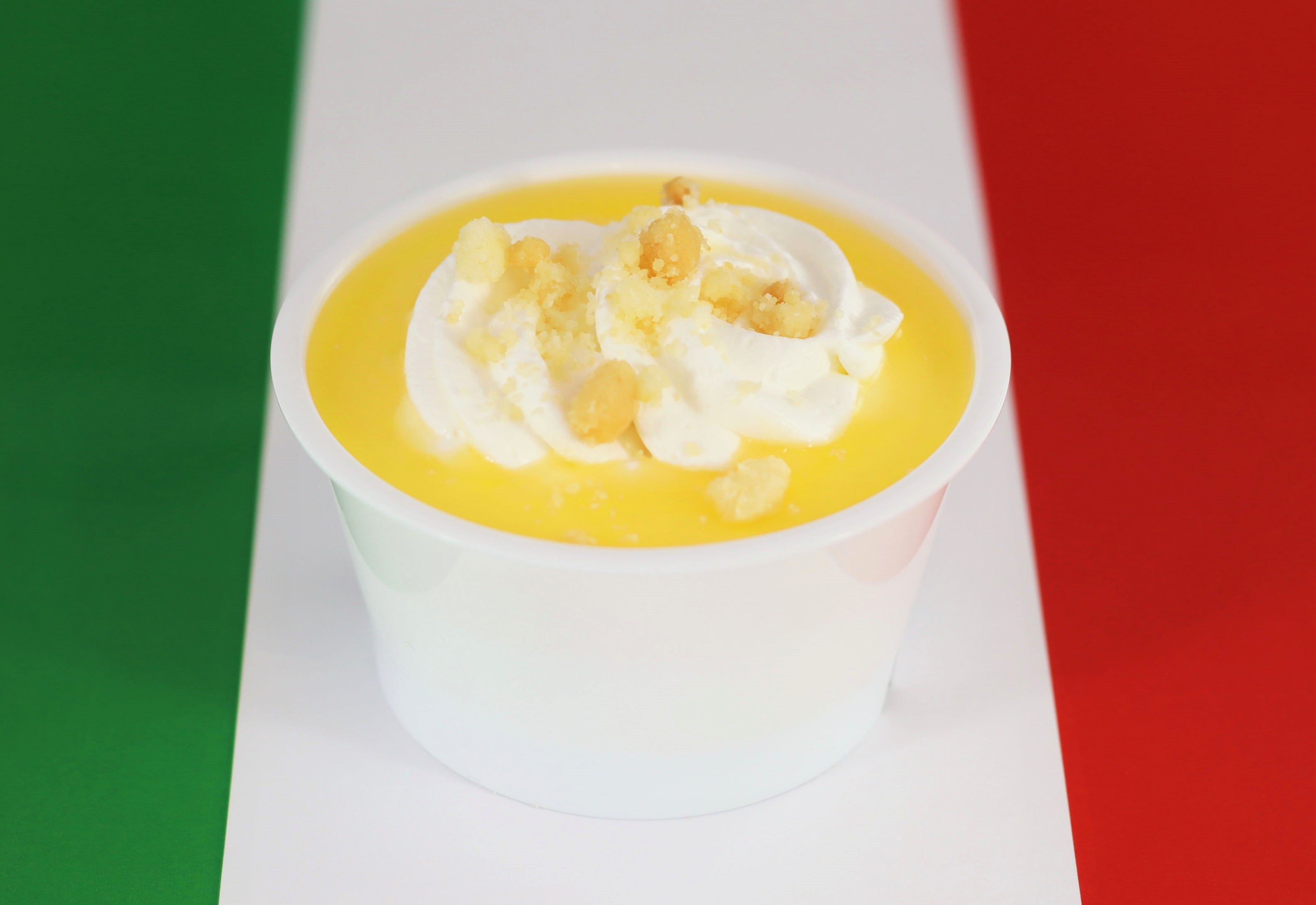 ミルクムースにレモンクリームと、優しい酸味のシチリア産レモンソースをかけたスイーツです。トッピングのクランブルのアクセントや、初夏にピッタリな爽やかな酸味をお楽しみいただけます。