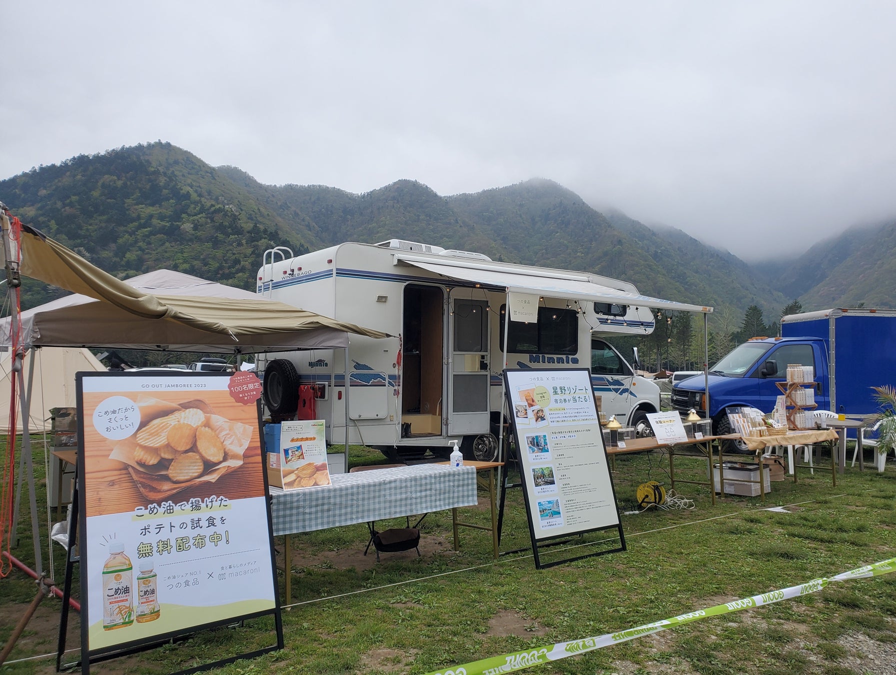 心地よい季節のキャンプイベントということで全日大盛況。当社のブースには約1400人お立ち寄りくださいました。キャンプなどで料理をされる方も多いからか、こめ油を知っている方、使用中の方が多くいらっしゃいました。