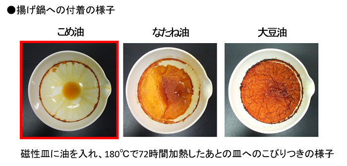 酸化しづらいこめ油は他の食用油に比べてべたつきが少なく、サラサラしています。「油がまとわりついていないから、洗い物がラクで助かる」「コンロのお掃除が楽になった」という声を多くの方からいただいています。