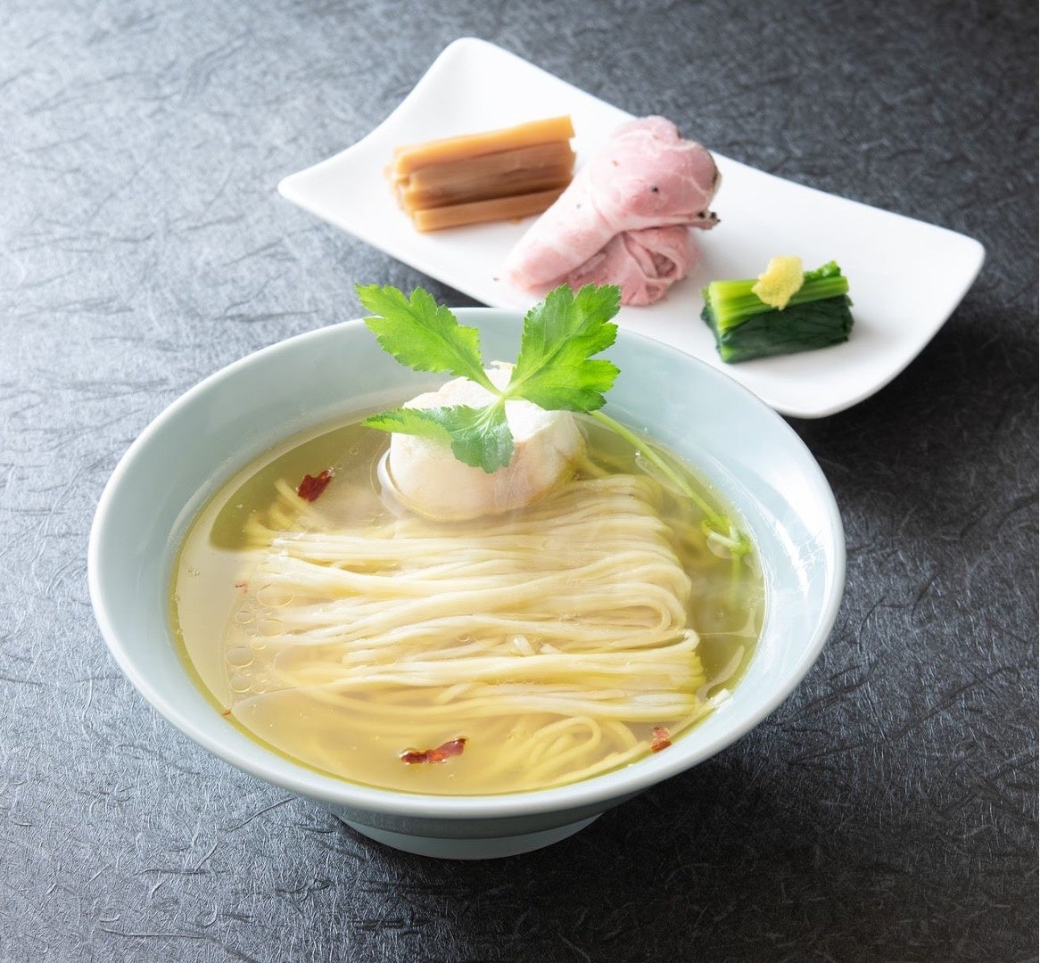 男鹿の名水・滝の頭の湧水で、秋田高原フードが育てたブランド鶏「高原比内地鶏」の鶏ガラともみじで丁寧に出汁を取り、芳醇な味わいの諸井醸造の十年熟仙しょっつると男鹿の塩を使用した化学調味料無添加の塩ラーメンを開発しました。付け合わせは、稲とアガベの麹を使用した塩麹漬燻製チャーシューです。この「男鹿塩ラーメン」をきっかけに、男鹿を知ってもらえる一杯になっています。