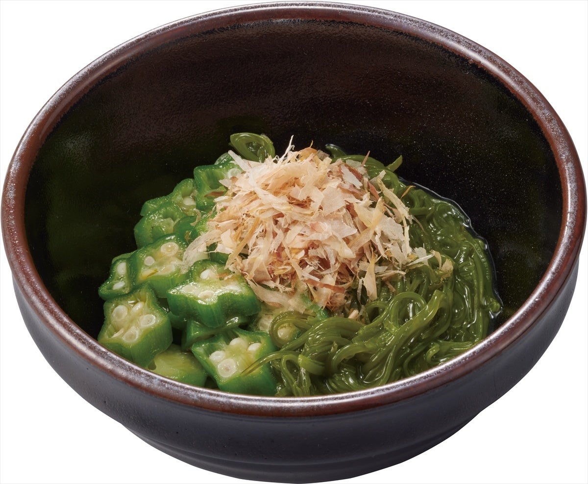 めかぶは葉酸、ビタミンK、食物繊維などの栄養素を持つ食材です。味付けには昆布やカツオなどを合わせた、だしの深みとすっきりした味わいが特長の特製“旨だし醤油”を使用しました。あっさりとした味わいの“旨だし醤油”と、ねばねば食材のめかぶとオクラでごはんがするすると進むこと間違いなしです。