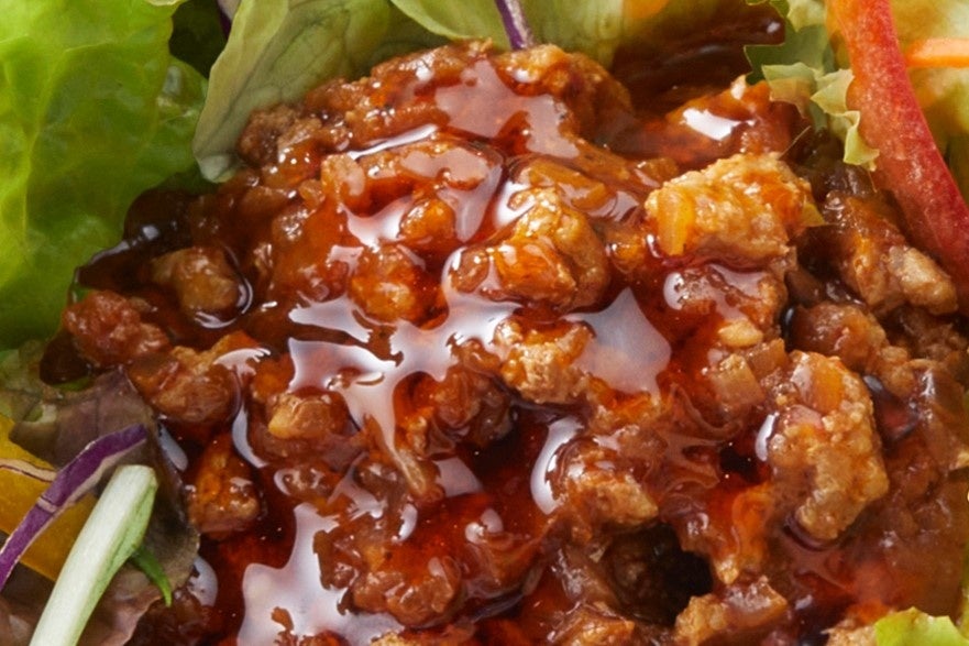 打ち立てのうどんとシャキシャキのサラダとの相性を考え、特製の担々肉みそは、辛さが際立つ味わいに。中華料理には欠かせないピーシェン豆板醤の旨みをふんだんに使用し、そこへ香り高い花椒の風味を合わせることで、より深みのある味わいに仕立てました。