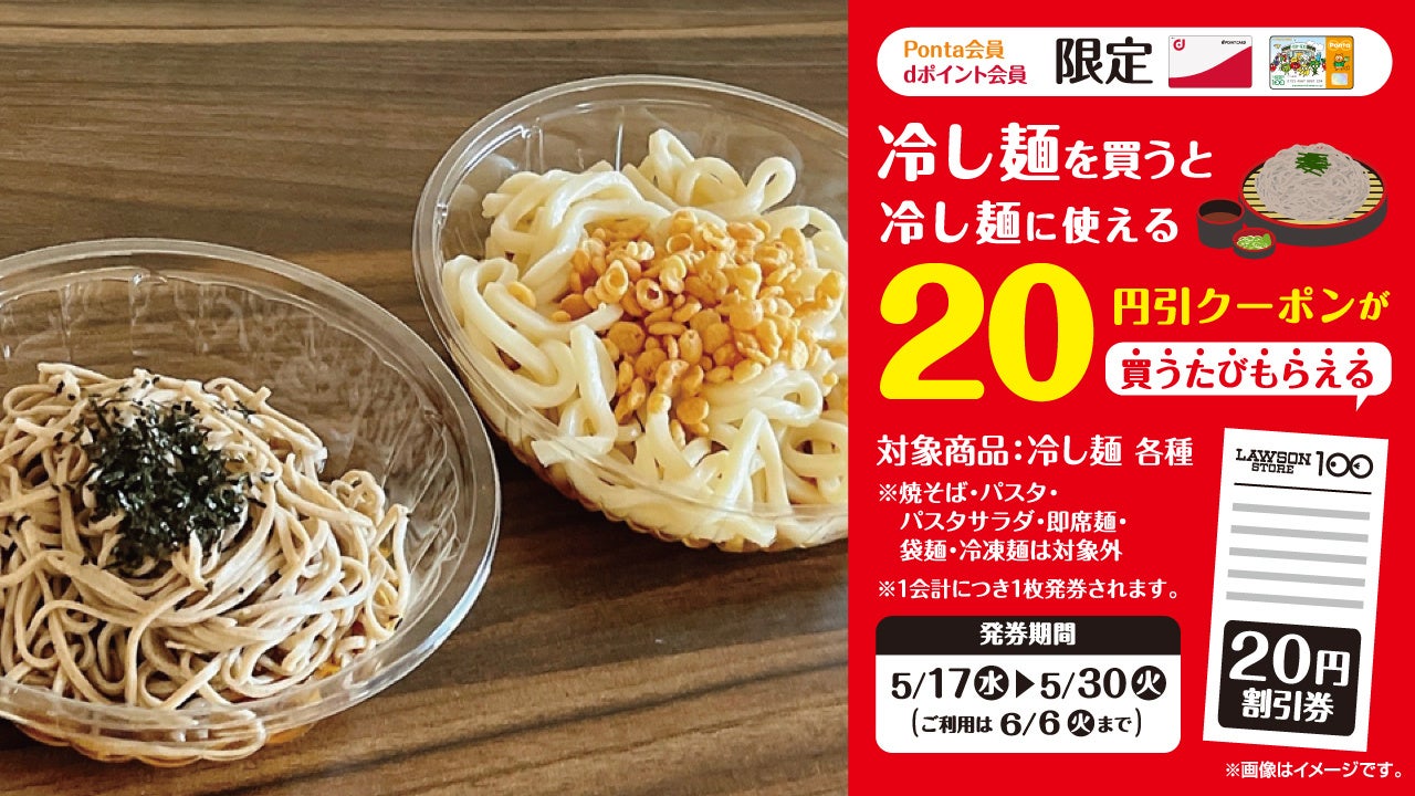 発券条件:期間中、Pontaカードまたはdポイントカードをご提示の上、対象の冷し麺をご購入いただきますと、次回冷し麺各種購入時にご利用いただける20円割引券を、1会計につき1枚進呈します。