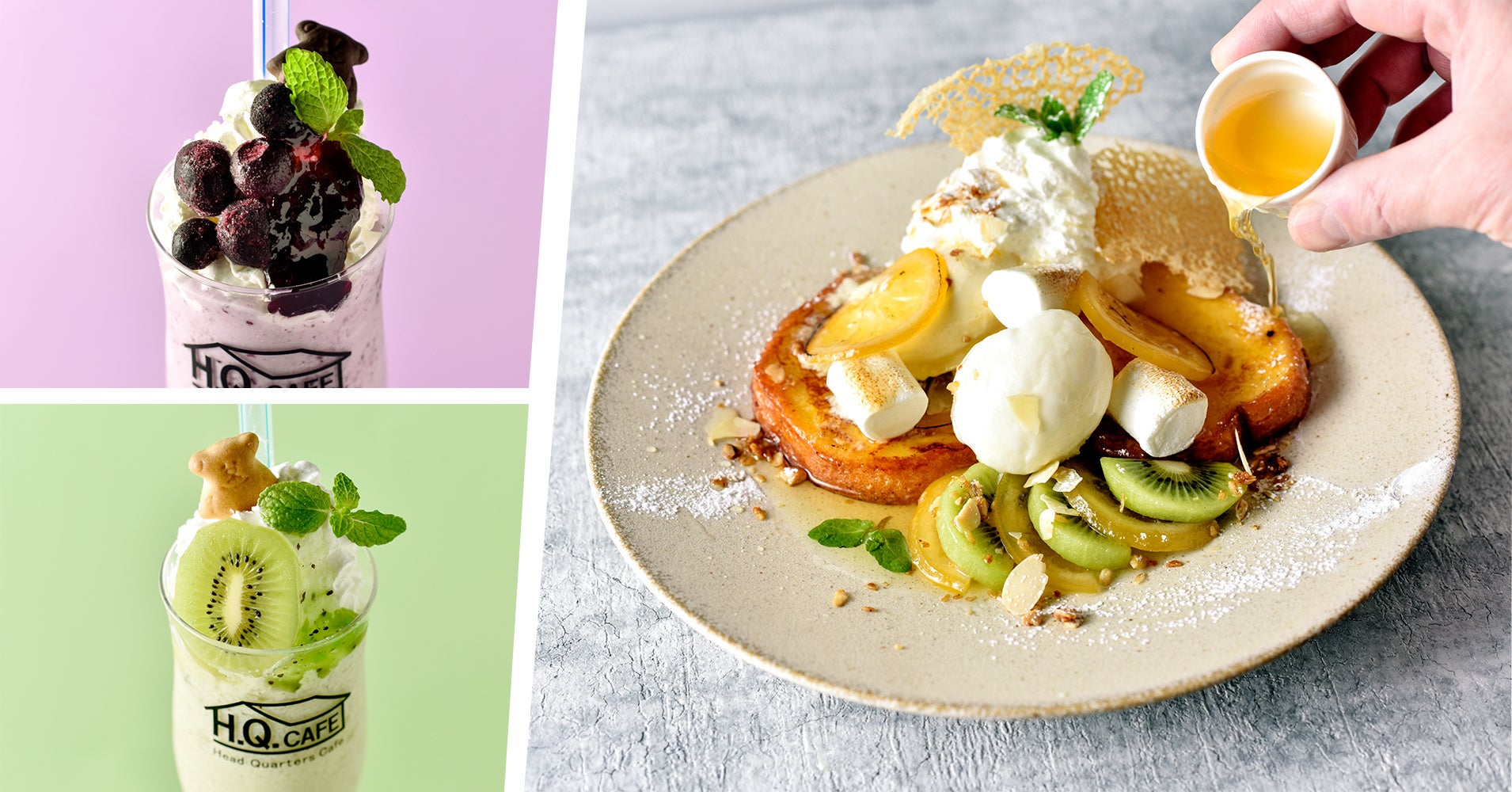 同店で人気のフレンチトーストを瀬戸内産レモン&厳選はちみつで仕上げた「フレンチトーストはちみつレモン」をはじめ、フルーツを合わせた爽やかなヨーグルトフラッペ2種類の、初夏にぴったりなラインアップです。是非、ご賞味くださいませ。