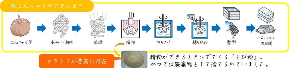 当社のこんにゃく由来グルコシルセラミド(こんにゃく芋粉抽出物)には、こんにゃく芋から板こんにゃくを製造するときに廃棄される「飛び粉」からセラミドを抽出しており、廃棄されていた素材の価値を高めて再利用したアップサイクル素材としても注目されています。本製品においては、こんにゃく製品の製造過程で出てきた廃棄物の中に存在する機能性成分を再びこんにゃく製品(こんにゃく麺)に配合したことで、こんにゃく芋を余すことなく活用し、さらに製品の価値が高まった、まさに、アップサイクルな製品といえます。昨今、当社のセラミドを一般食品に配合する事例は増えており、今後もこのような事例を増やしていきたいと考えています。