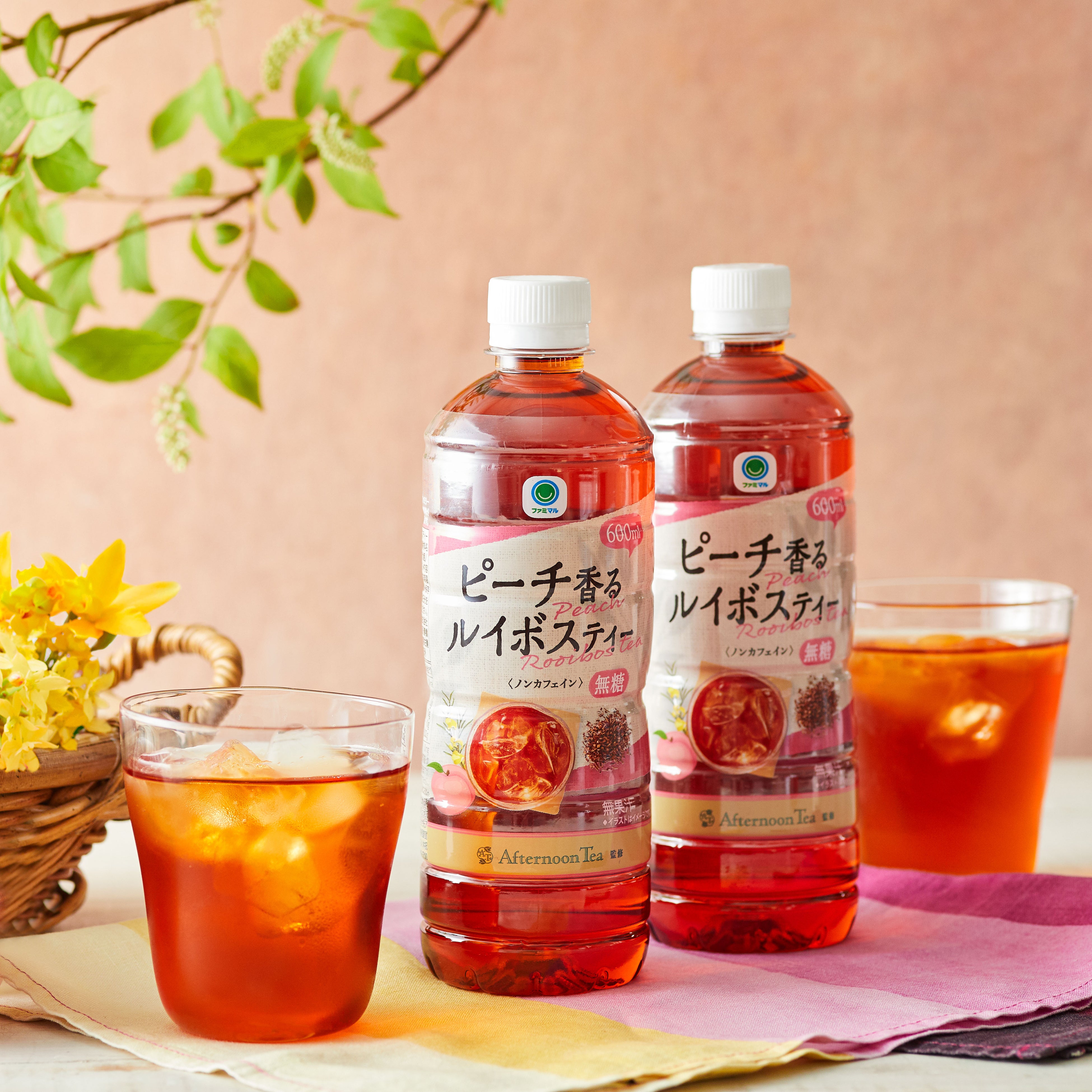 新発売「ファミマル ピーチ香るルイボスティー」は、Afternoon Teaが提案するフルーツとお茶の組み合わせをイメージして商品開発された無糖フルーツフレーバーティーです。南アフリカ産ルイボス茶葉を100%使用したルイボスティーにピーチの優しい香りをあわせ、すっきりとした味わいに仕上げています。