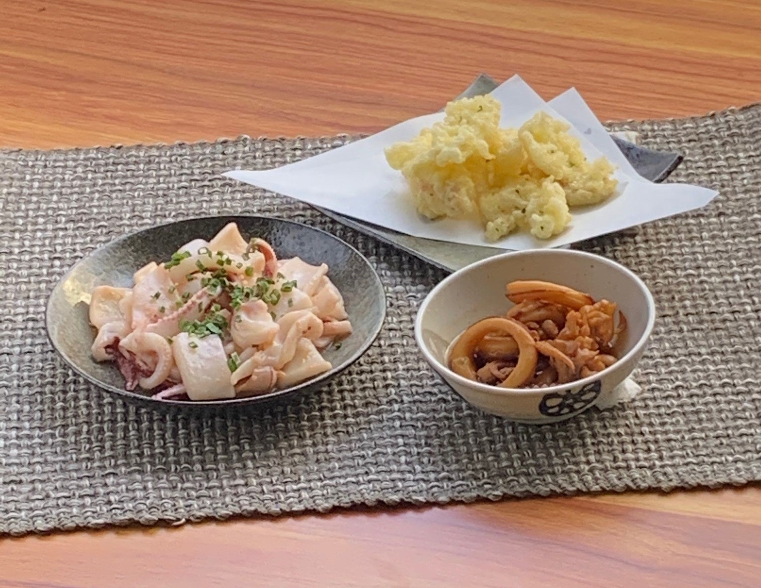 お召し上がり方はとても簡単。まずは袋のまま流水で約10~15分解凍し、袋を開けて盛り付けるだけ。すでに細く切って盛り付けてあるので、料理の腕には関係なく気軽に食べられることも大きな魅力です。いかの刺身の後に残った、耳やゲソの部分は天ぷら、塩焼きはもちろんのこと、煮つけやバター焼きもおすすめ。剣先いかは目とくちばし(口の中の固い部分)以外は、全て美味しく召し上がっていただけます。