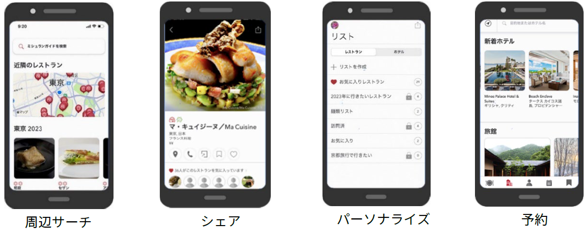 ミシュランガイドは「ミシュランガイド公式アプリ」を開発し、既に世界で利用されています。4月14日より日本語でもお使いいただけるようサービスを拡大しました。ミシュラングループの推進するDX(デジタルトランスフォーメーション)により、一般利用の高いスマートフォン、タブレットを介して、様々なコンテンツへのアクセスを加速させます。