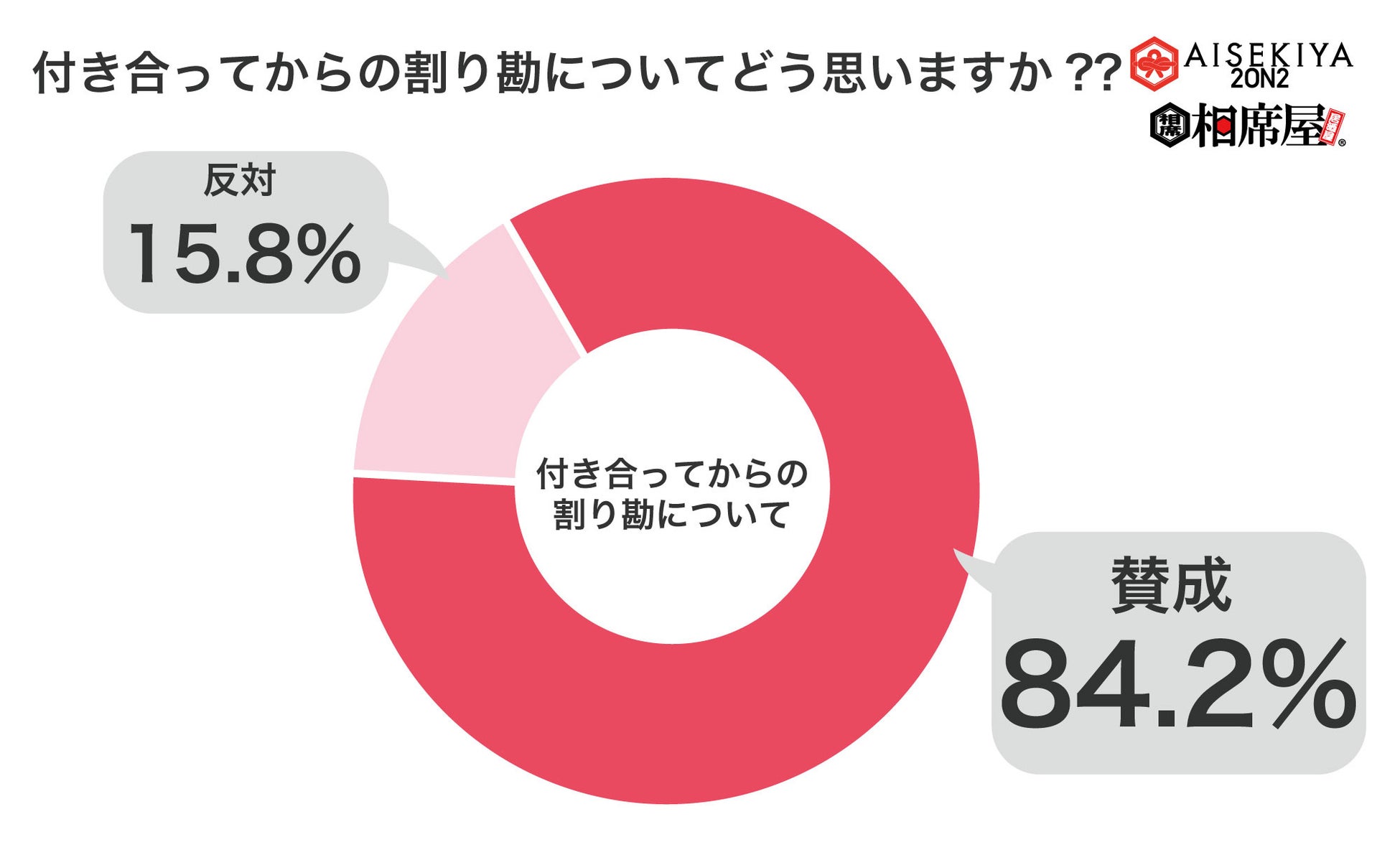 Z世代の男女538人に「付き合う前の割り勘についてどう思いますか?」という質問をしたところ、77.9%が賛成と回答しました。また、「付き合ってからの割り勘についてどう思いますか?」という質問をしたところ、84.2%が賛成と回答しました。
