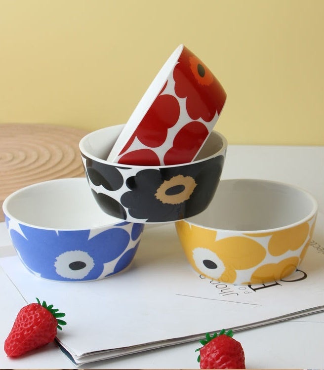 北欧風のカラフルなデザインのセラミックボウル。ご飯茶碗としても最適なサイズ感。