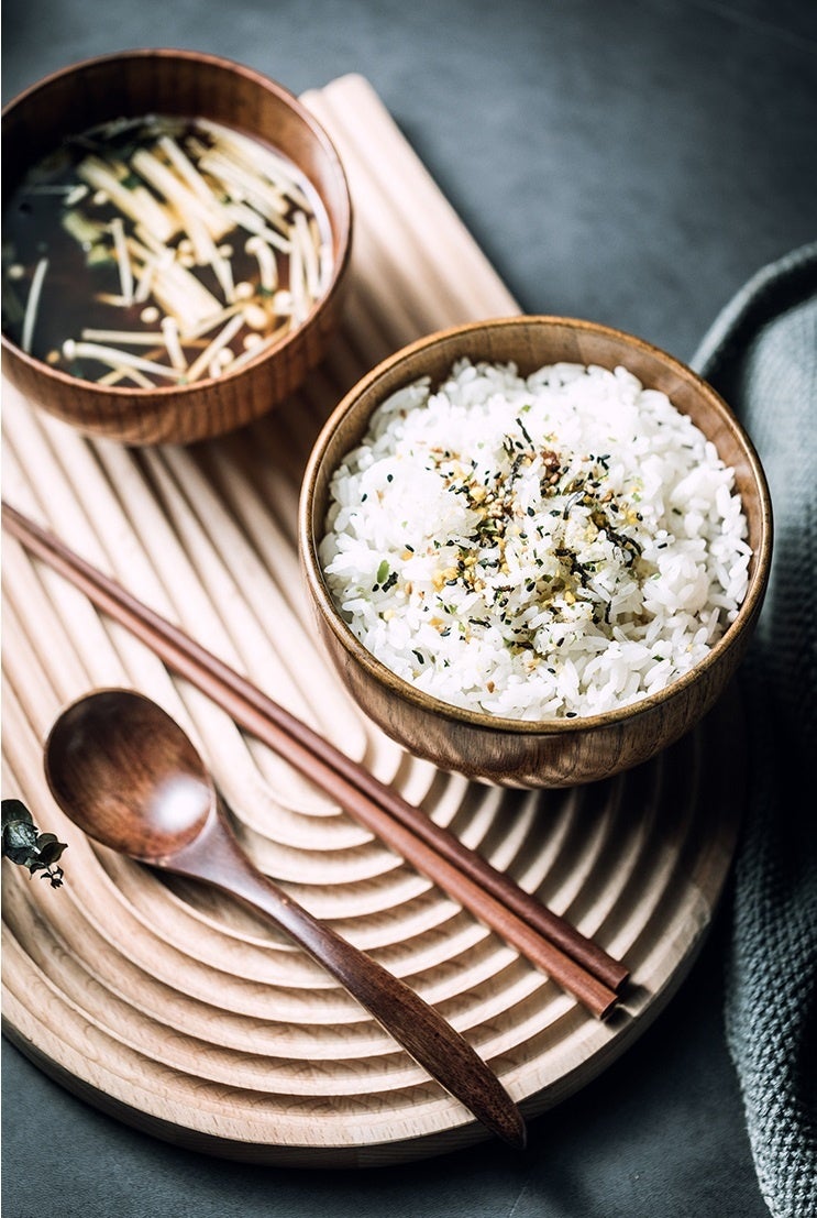 シンプルな木製の茶碗。ご飯や味噌汁はもちろん、フルーツなどを盛りつけてもおしゃれに。