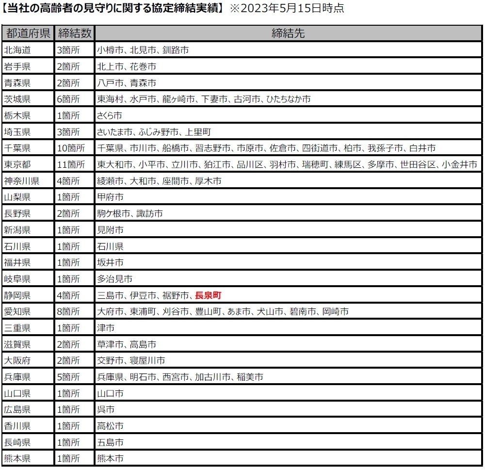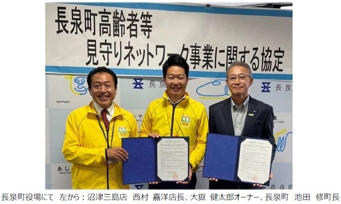 高齢者に密接な事業を展開する当社にとって、「高齢者の見守り」への取り組みは加盟店共々重要と考えています。今回の長泉町との協定締結をはじめ、今後も各自治体等との連携を図りながら「すべてはご高齢者の為に」という想いの具現化に向けて、加盟店と一体となって取り組んでまいります。