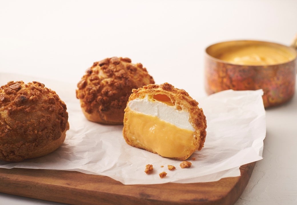 「CUSTA」こだわりの濃厚なカスタードクリームとミルキーなクリームシャンティをアーモンドが香ばしいクッキーシューにたっぷりと詰めました。