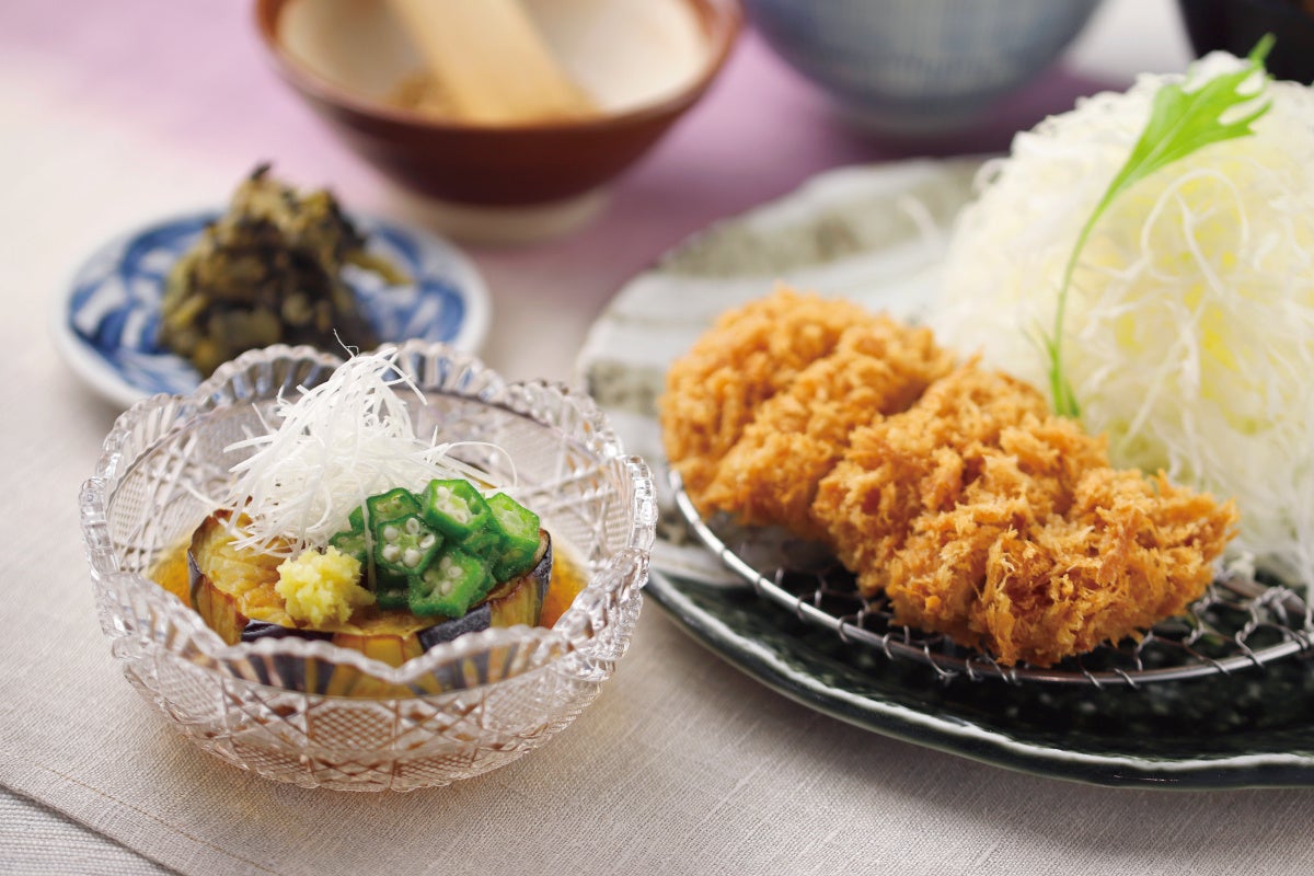 旬の味覚を味わう『賀茂茄子の揚げ浸しとヒレかつ』