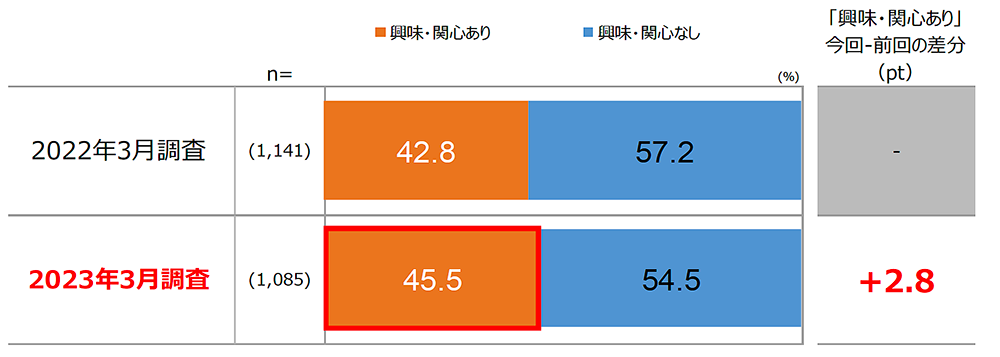 飲食店経営において、45.5%がデジタルツール導入に興味・関心あり。前回調査(2022年3月)の42.8%から微増
