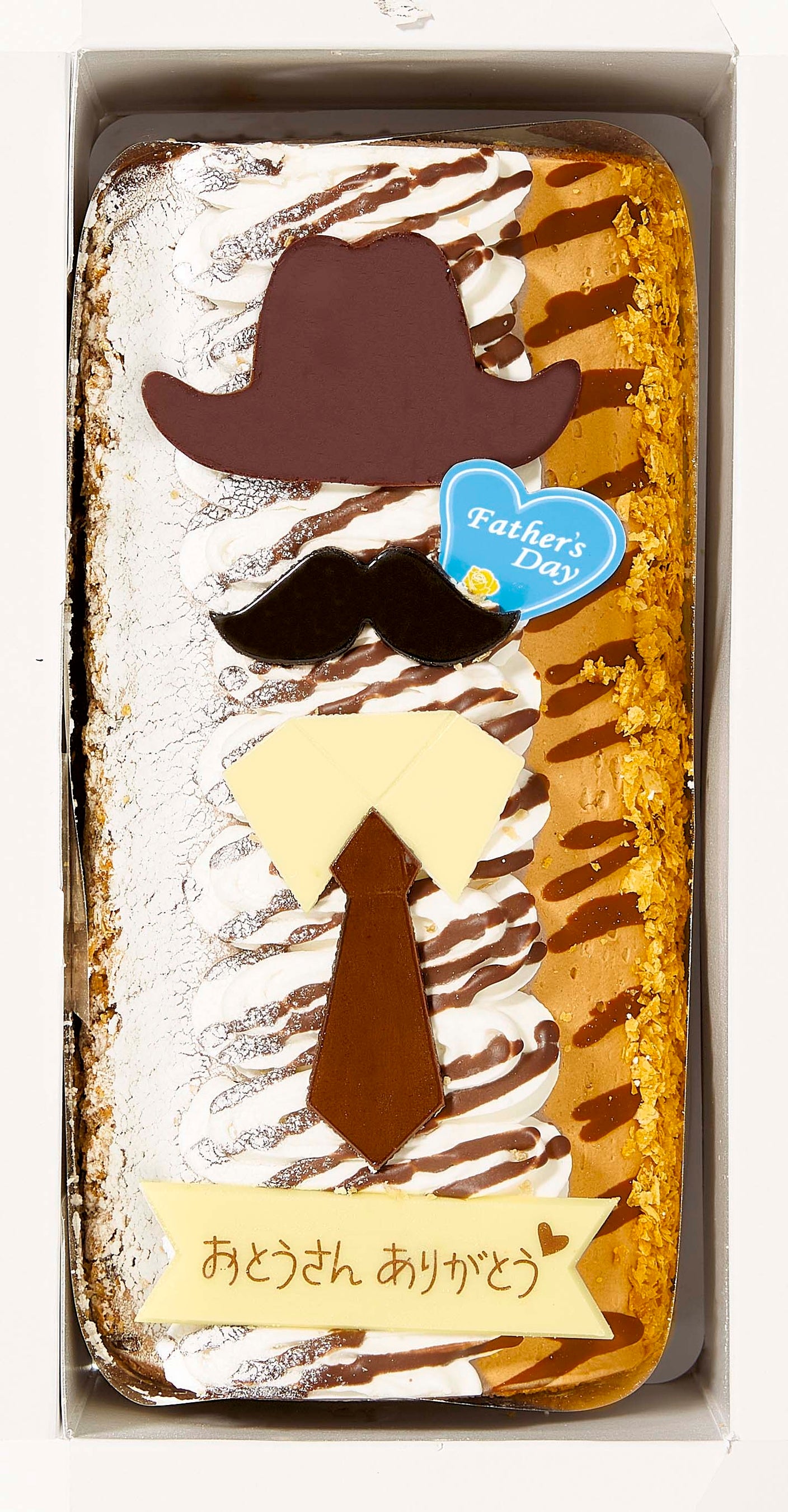 「おとうさん ありがとう」のメッセージとお父さんをイメージしたネクタイ型のチョコレート飾りなどをデコレーションしたロールケーキです。