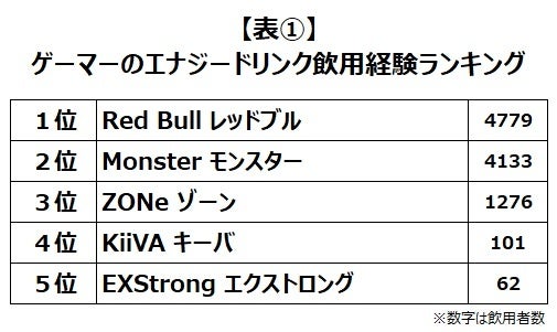 「Monster モンスター」も、東京ゲームショウをはじめとしたゲーム系のイベントにも多数協賛しており、ゲーマーの認知度や飲用経験が多かったものと考えられます。