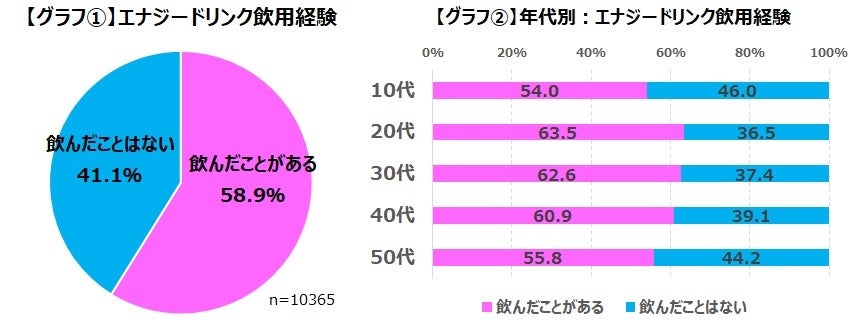 ■ エナジードリンクの飲用経験があるゲーマーは58.9%と半数を超える結果に