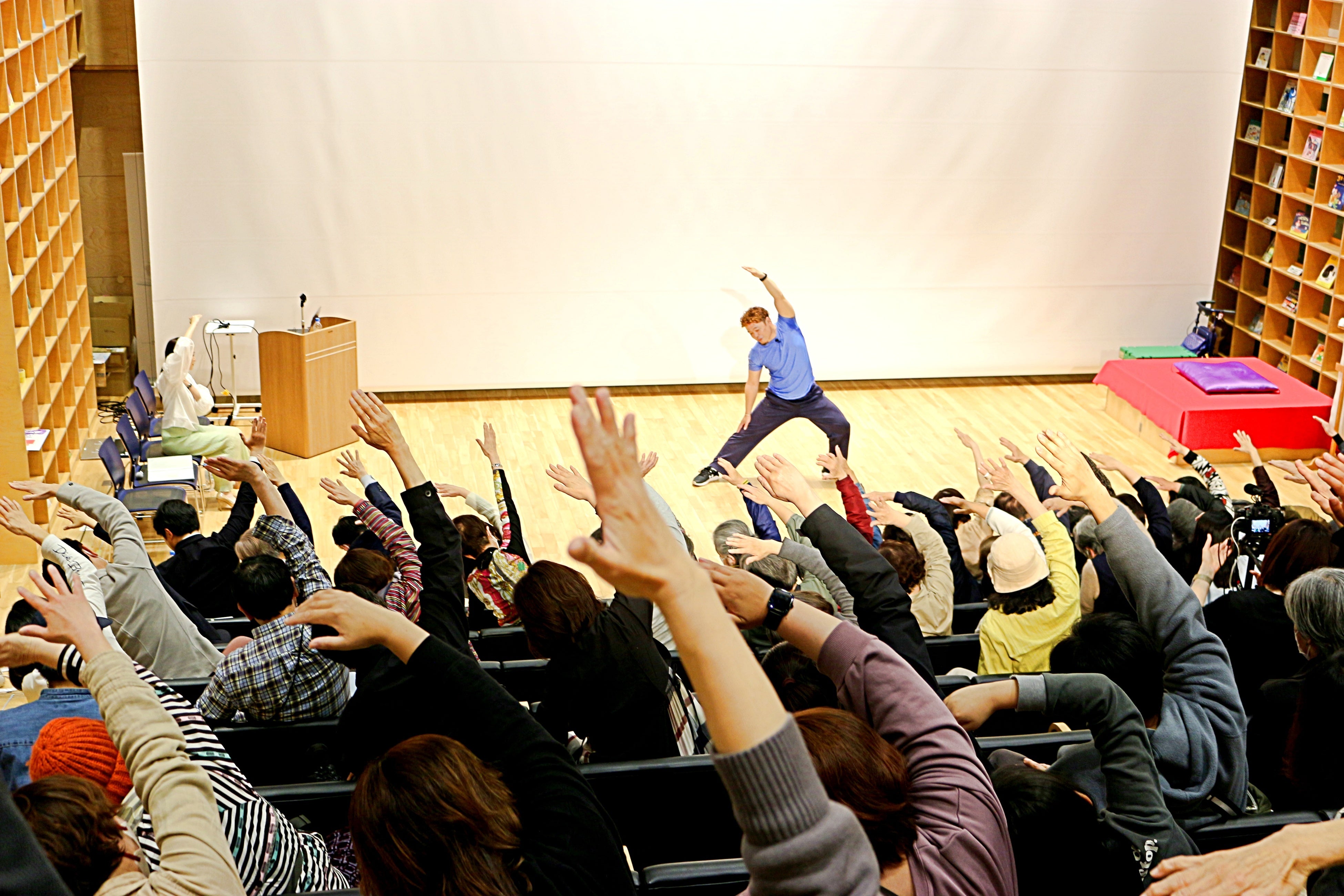 イベントの最後にはパーソナルトレーナー日野原大輔さんによる、心と体を健康に導く「椅子に座ったまま簡単にできる5分間エクササイズ」も行われました。