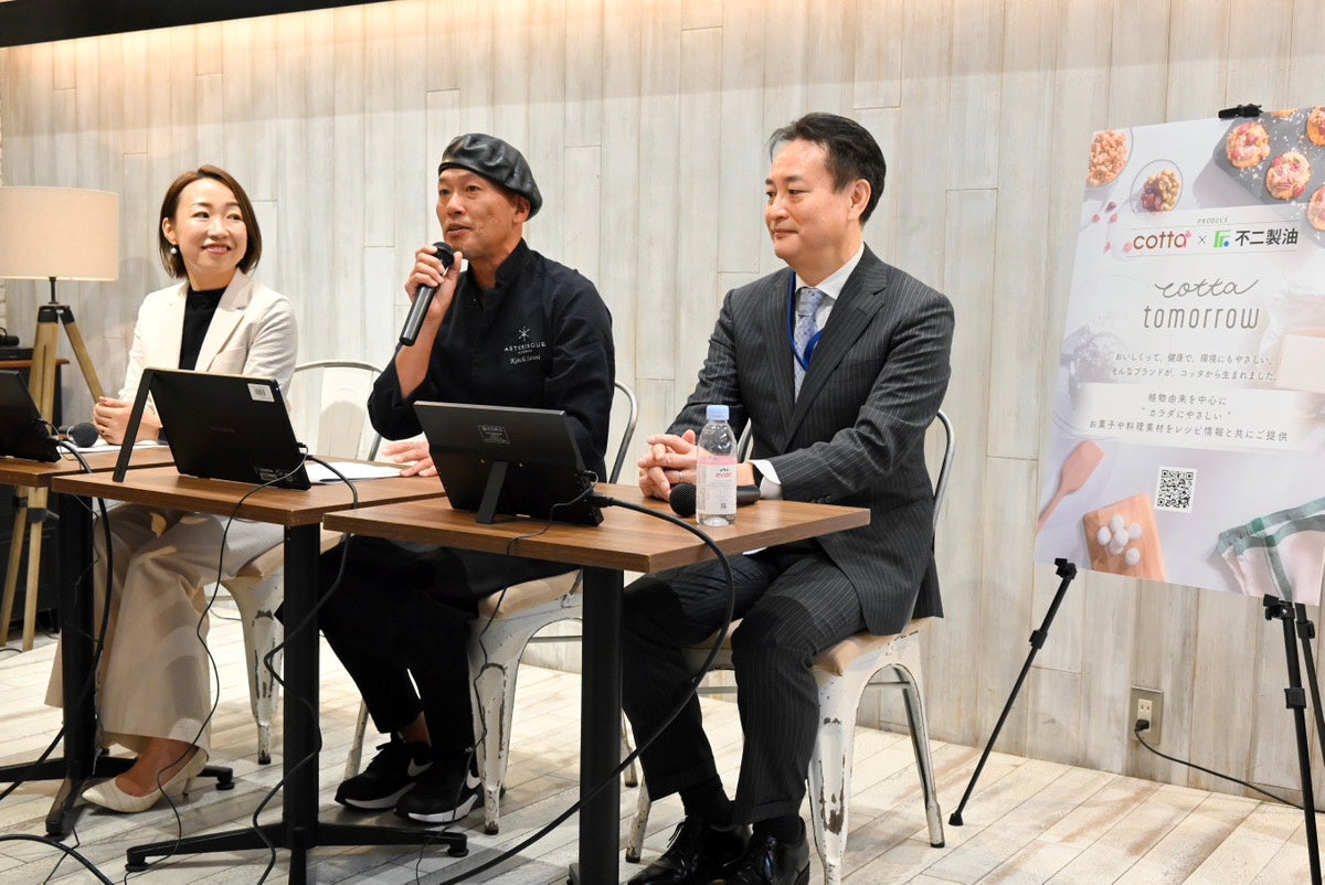 鈴木氏「世界のPBF市場は急成長していますが、これからのキーワードは“おいしさ”です。不二製油は、豆乳クリーム素材・大豆ミート・植物性ダシなどで“おいしいPBF”を追求してきました。cotta tomorrowを通じておいしいPBFを消費者へ発信していきたいと考えています」