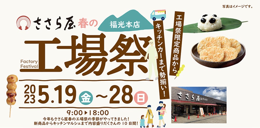 「工場祭」はささら屋が春と秋の年2回開催する最大級のお客様感謝イベント。米菓商品だけでなく、地元の素材を使った特別なだんごやおこわ、スイーツ等も販売することで、地産地消にこだわるささら屋の魅力を伝えたいと考えています。また日頃ご愛顧をいただいている地元のお客様への感謝の気持ちを込めて、数量限定や期間限定価格のお得な商品、おやつ・おつまみ米菓商品など、工場祭限定の商品も取り揃えています。また、税込2000円以上お買い上げごとに1回、はずれなしの抽選ができます。