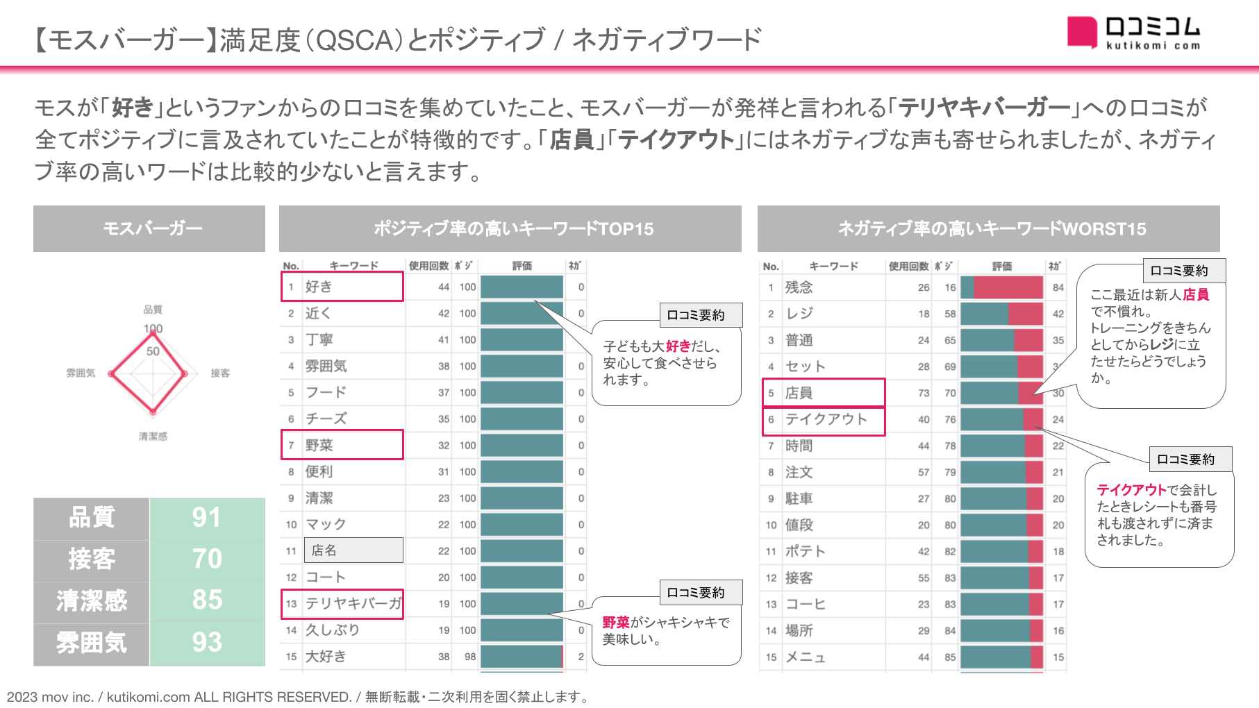 これらの「キーワード」が、モスバーガーの顧客満足度アップに貢献したと考えられます。