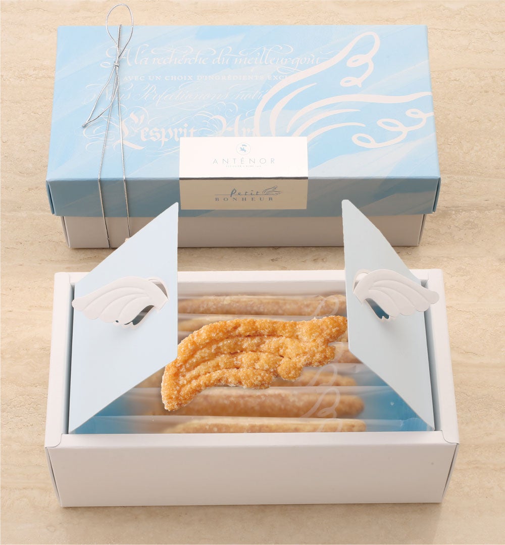 幸せを運ぶ天使の羽の形をしたパイ。ニュージーランドの広大な牧場で育てられた乳牛の生乳から作られる、香り高いバターを幾重にも折り込み、天使の羽の形に香ばしく焼き上げました。