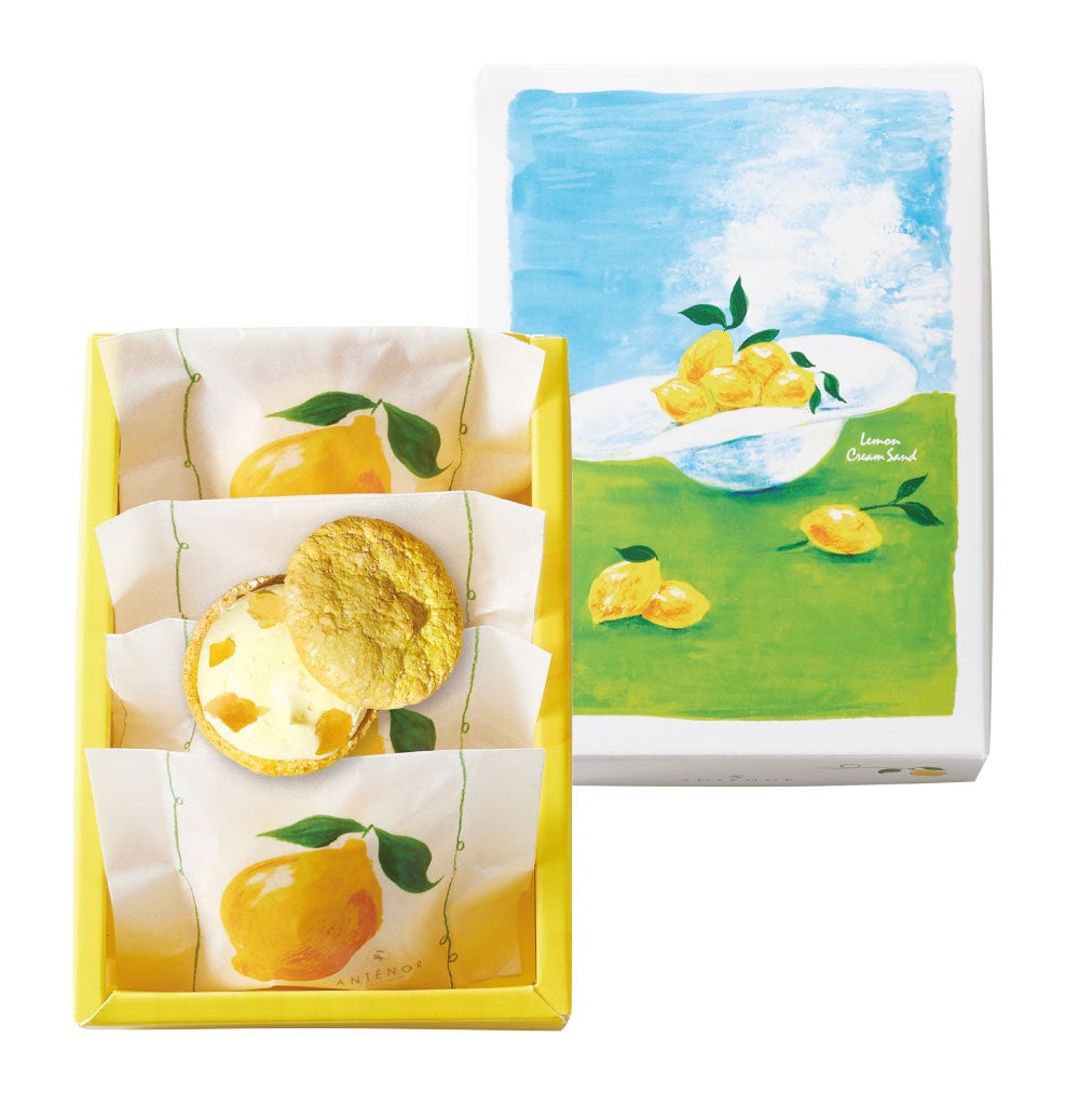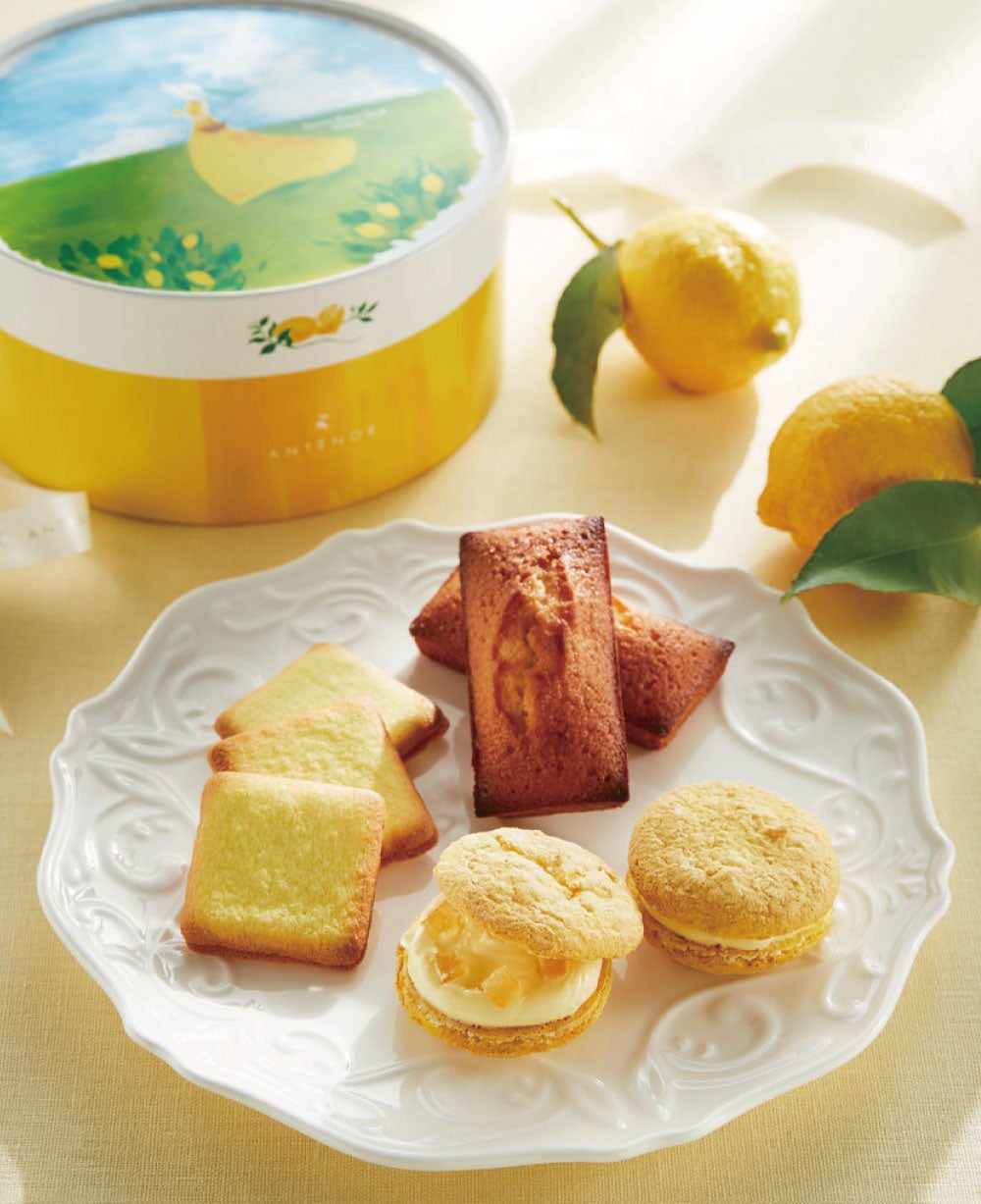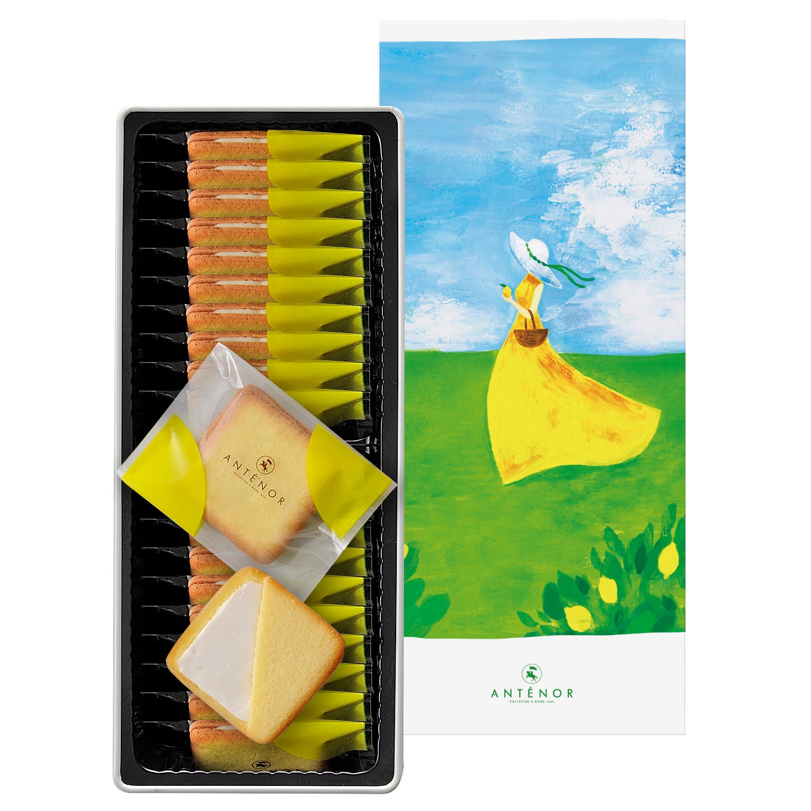 アンテノールの店頭・オンラインショップにて 5/20(土)より、甘酸っぱいレモンづくしの夏限定の焼き菓子ギフトを販売いたします。さわやかなレモン果実、風がふきぬけるレモン畑でレモン摘みをする女性を、かわいいイラストで描いたパッケージに、夏のおいしさを詰めてお届けします。 ※プレゼント商品ではございません。