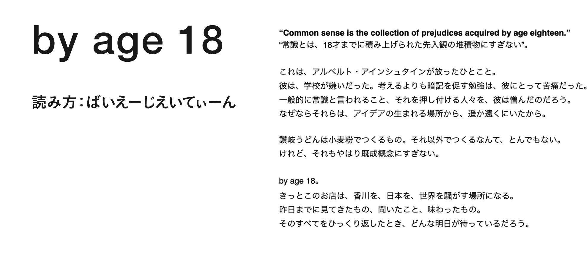 香川県高松市という地方から、世界に向けて「食」や「技術」を発信しながら、ゆくゆくは「by age 18」というブランドを讃岐うどんにとどまらず、グルテンフリーの広島お好み焼きや、ヴィーガン長崎ちゃんぽんなど、地域のB級グルメをS級(世界級)グルメにしていきたいと考えています。