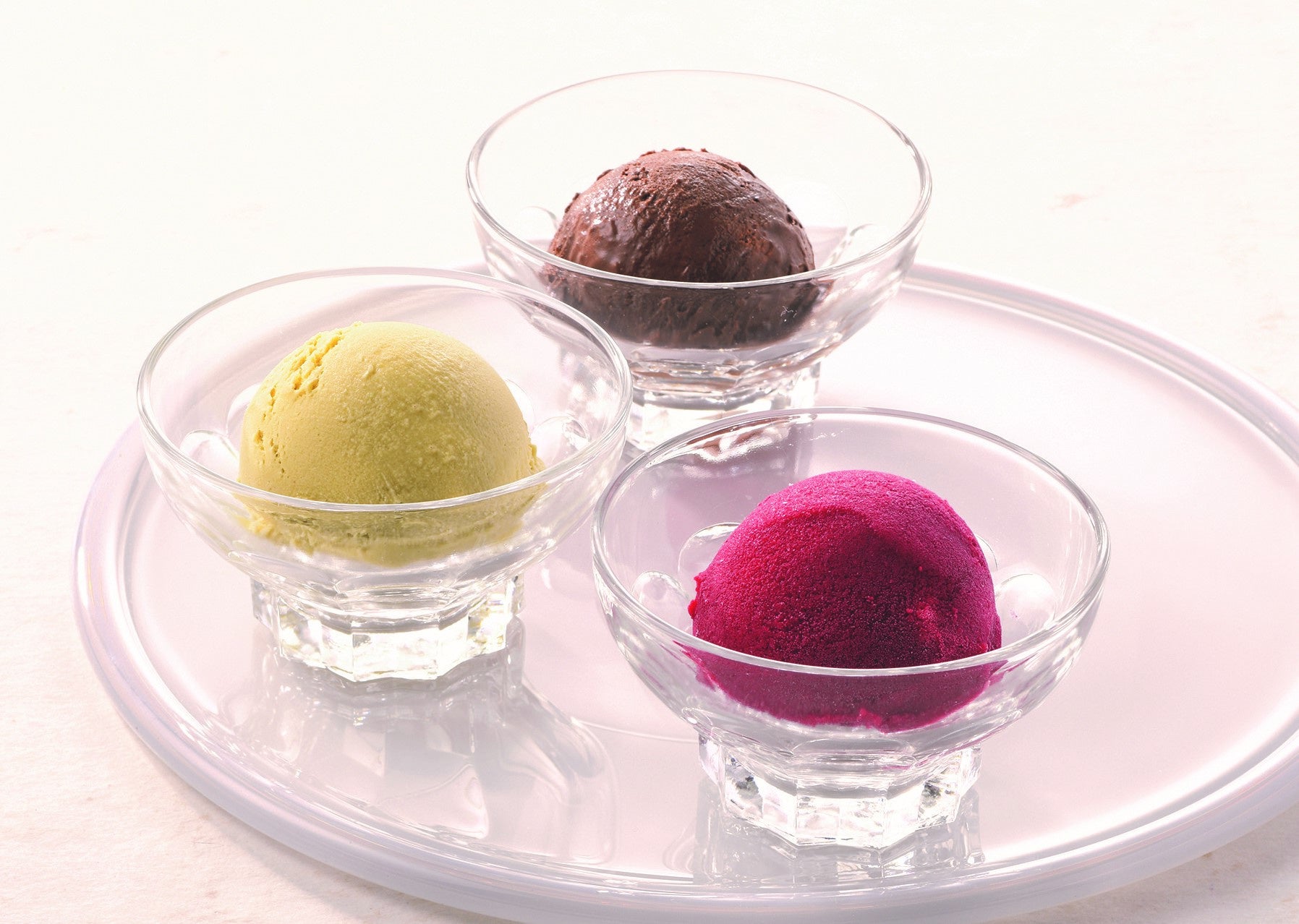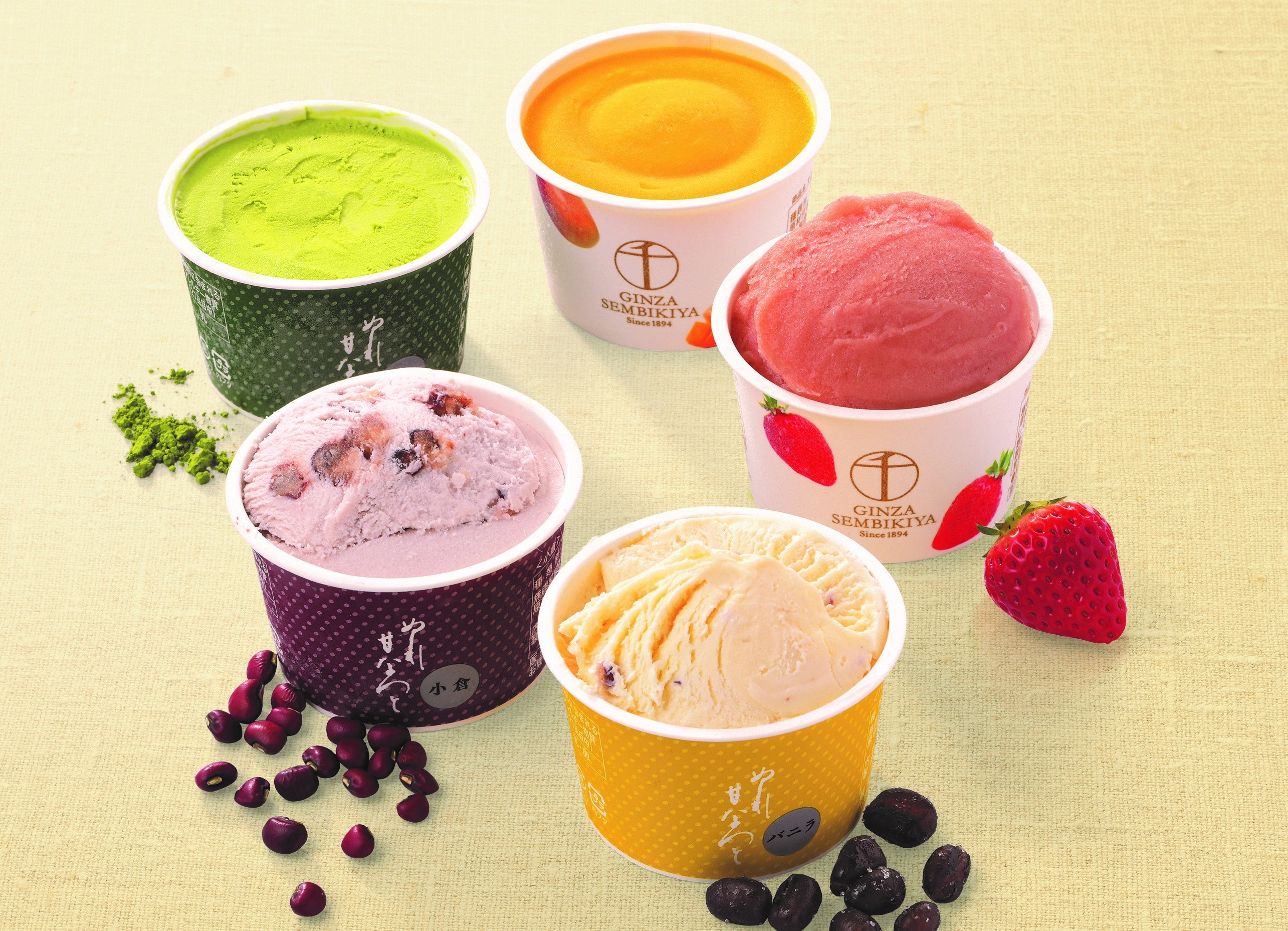 果物専門店「銀座千疋屋」が厳選した果汁を使ったソルベ(マンゴー・柚子はちみつ・メロン・ストロベリー・ゴールデンパイン)と、老舗和菓子店「花園万頭」の銘菓「ぬれ甘なつと」入りのアイス(バニラ・抹茶・小倉・黒糖・きなこ黒蜜)を詰め合わせました。