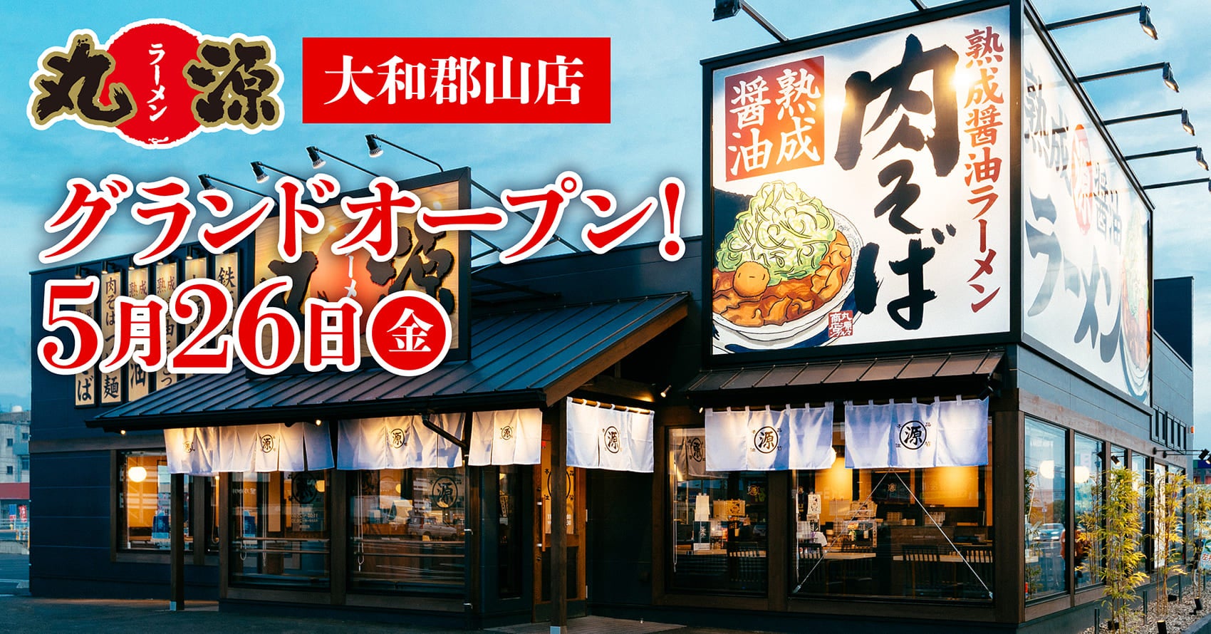 株式会社物語コーポレーション(本社:愛知県豊橋市/代表取締役社長:加藤 央之)が運営する『丸源ラーメン 大和郡山店』は、2023年5⽉26日(金)にグランドオープンいたします。オープン記念として、2023年6月4日(日)まで『丸源ラーメン 大和郡山店』のみでご利⽤いただける100円引クーポンを配布します。