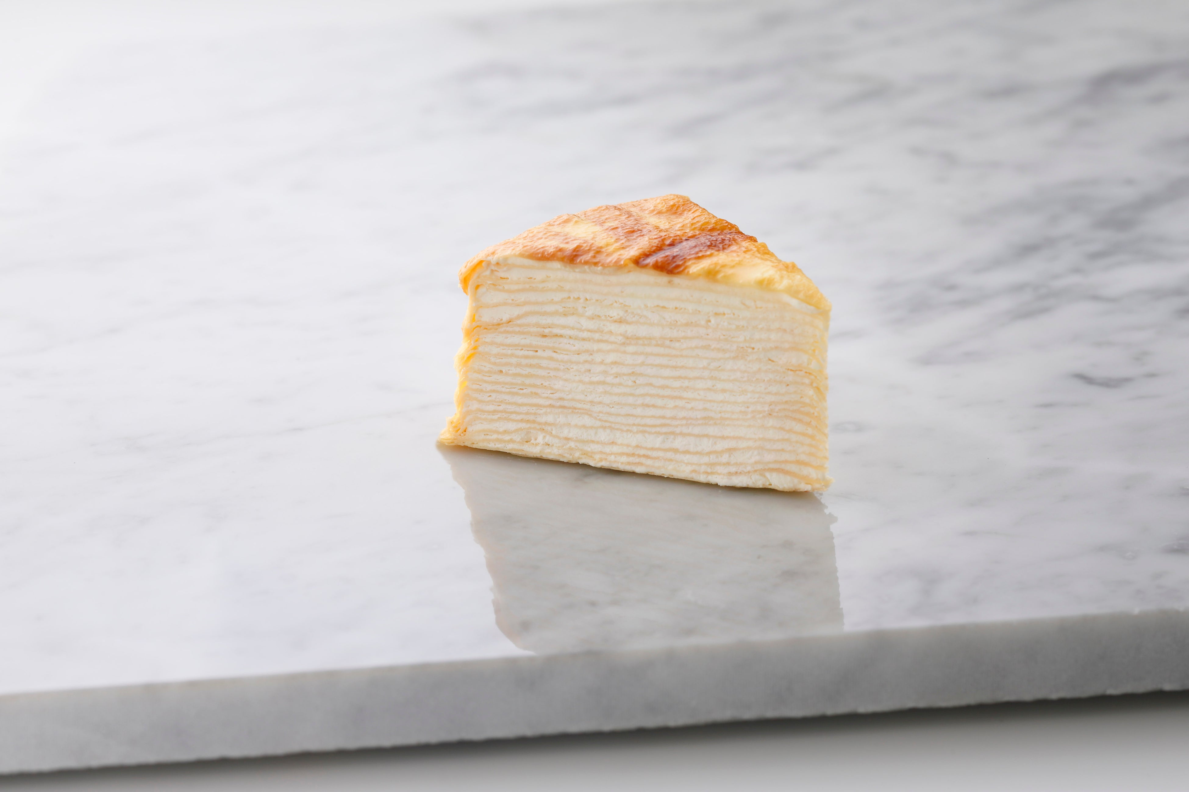 <カサネオ>は、様々な素材を重ねることで生み出される新しいお菓子で、皆さまの日常をプレミアムにする洋菓子ブランドです。「ミルクレープ はじまり」にはグラスフェッドバターを使用。向こうが透けるくらいまで極限に薄く仕上げたクレープ皮と、鮮度にこだわったオリジナルクリーム。この組み合わせが最も活きるバランスとして、20層に重ねています。