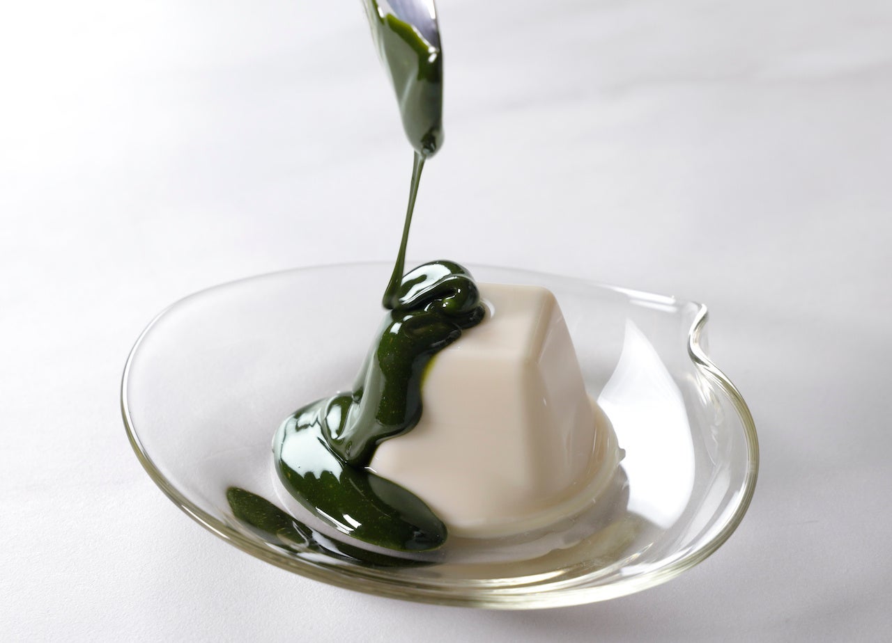 厳選した宇治抹茶を、ぷるんと夏らしいのどごしのパンナコッタに。できるだけ加熱をぎりぎりに抑え、お濃茶の香りを逃さずしっかり閉じ込めました。マスカルポーネチーズの乳味をあわせることで、お濃茶の力強い旨みと苦味を引き立てます。