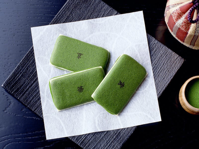 京都 宇治 白川の厳選茶葉をはじめとする宇治茶を使用。色・味・香りを極めたお濃茶を、シェフの技と五感で繊細な口どけのラングドシャに。