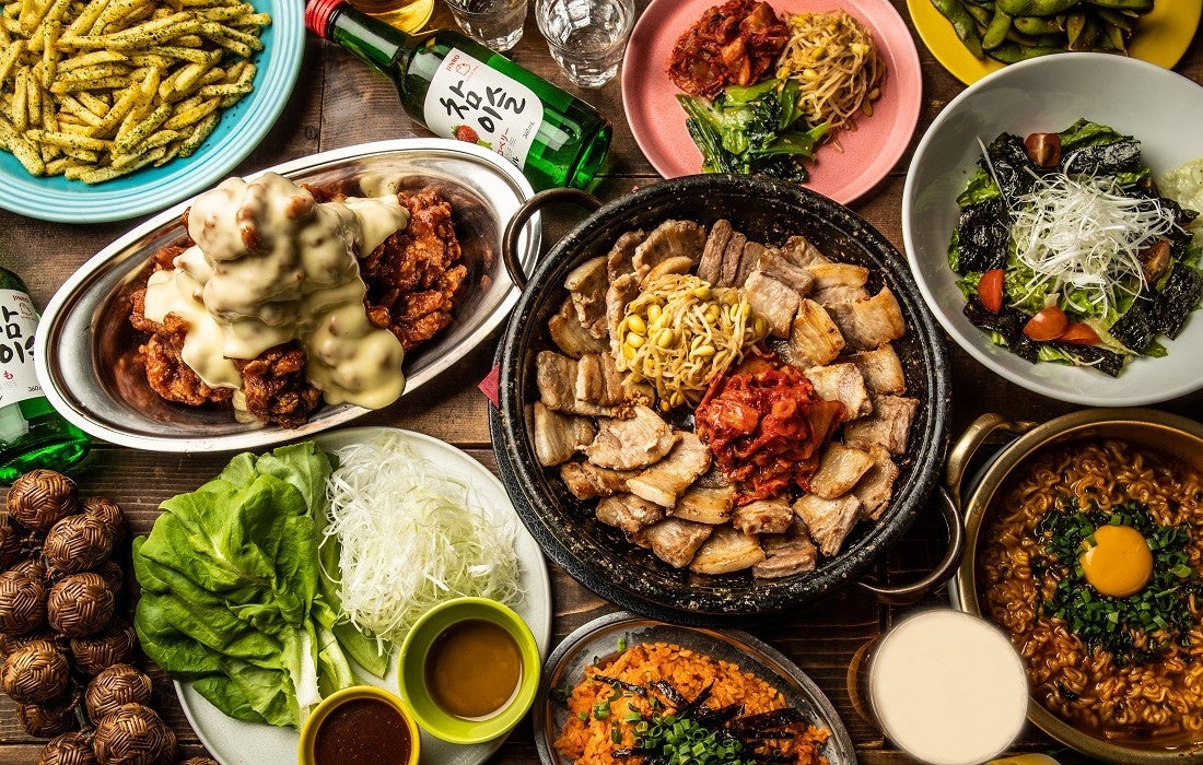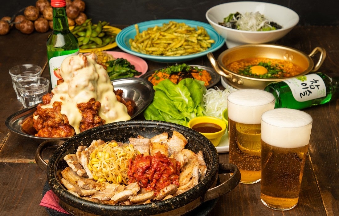 石焼きサムギョプサルプレート&ヤンニョムチキン☆〆のポックンパと激辛辛ラーメンまで付いた全9品